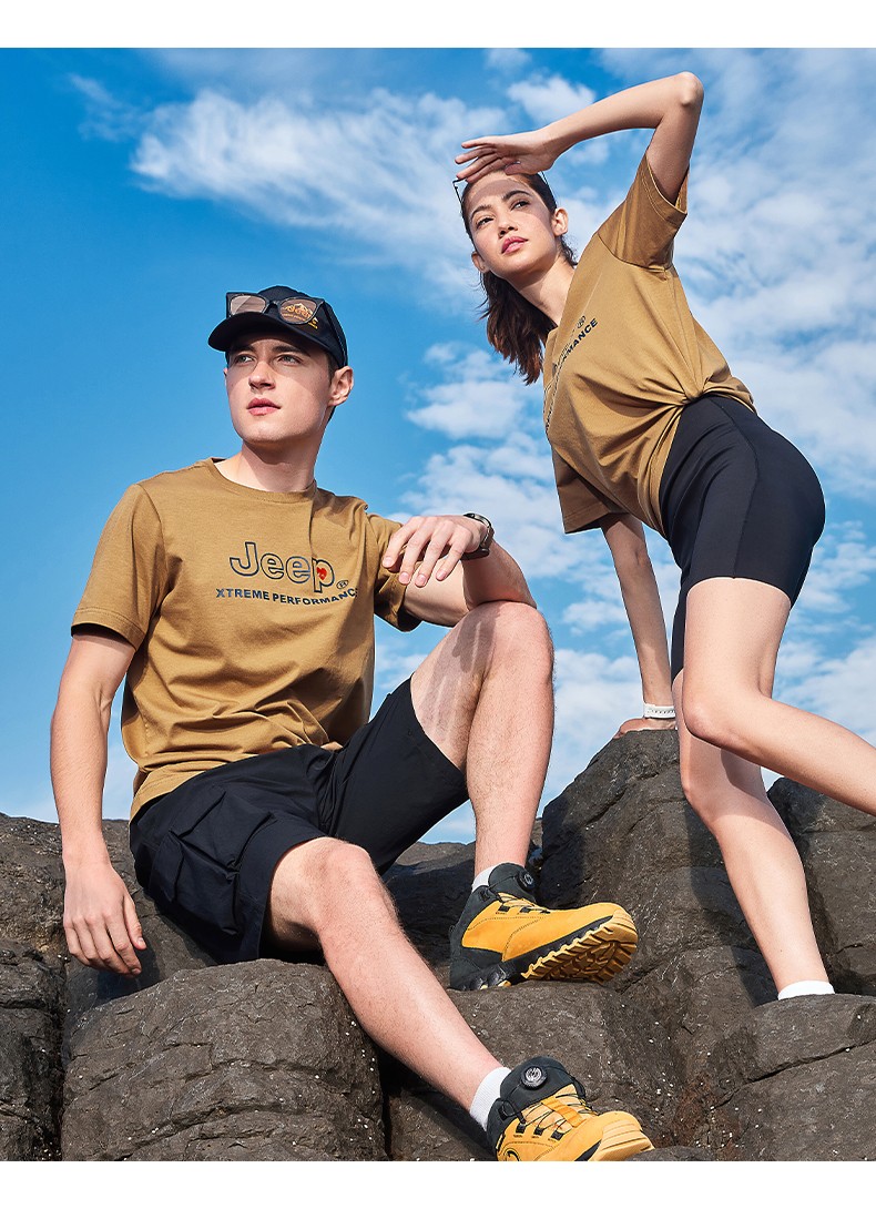 Jeep吉普户外索罗娜凉感快干t恤男亲肤透气运动衫情侣弹力短袖女 J322074501 摩卡棕 /品牌黑/ 玉白色 XS-4XL 下单请备注颜色尺码