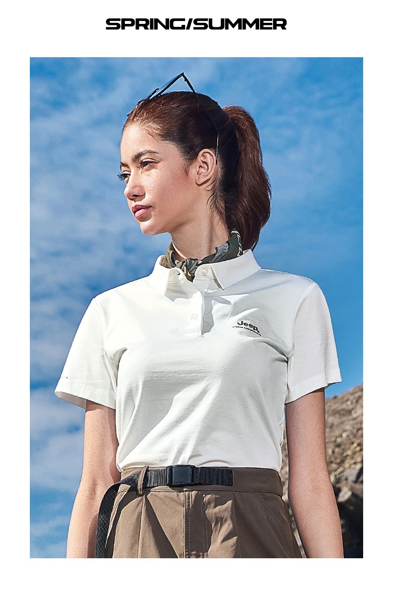 商品名称:Jeep吉普户外速干T恤女索罗娜凉感短袖夏季吸湿透气运动POLO衫 J322089940 白色/ 品牌黑/山芋粉 S-3XL 下单请备注颜色尺码