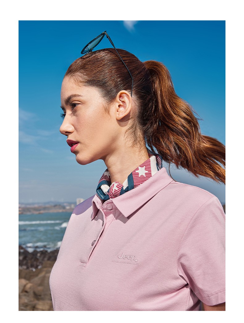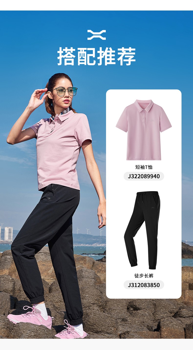Jeep吉普户外速干T恤女索罗娜凉感短袖夏季吸湿透气运动POLO衫 J322089940 白色/ 品牌黑/山芋粉 S-3XL 下单请备注颜色尺码