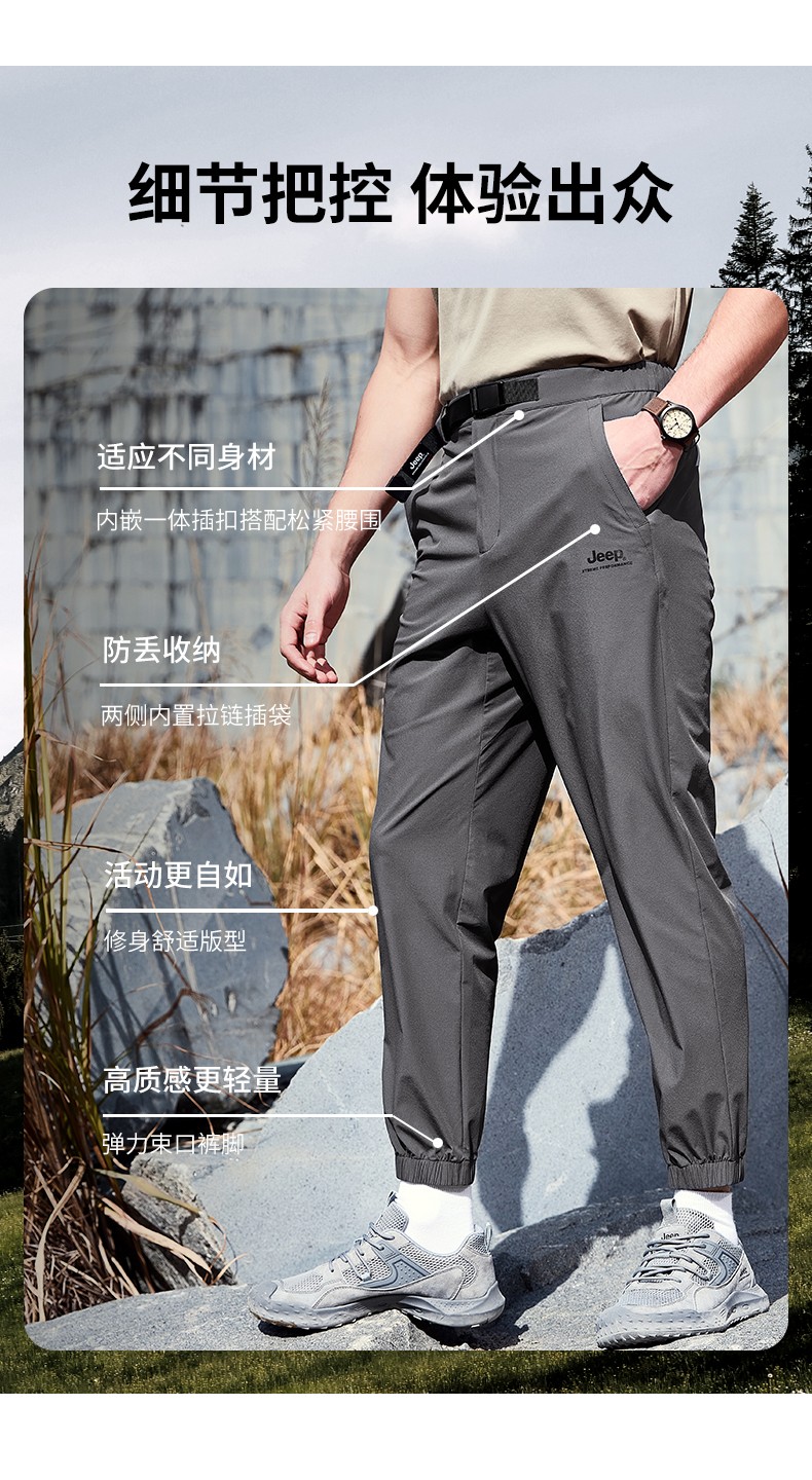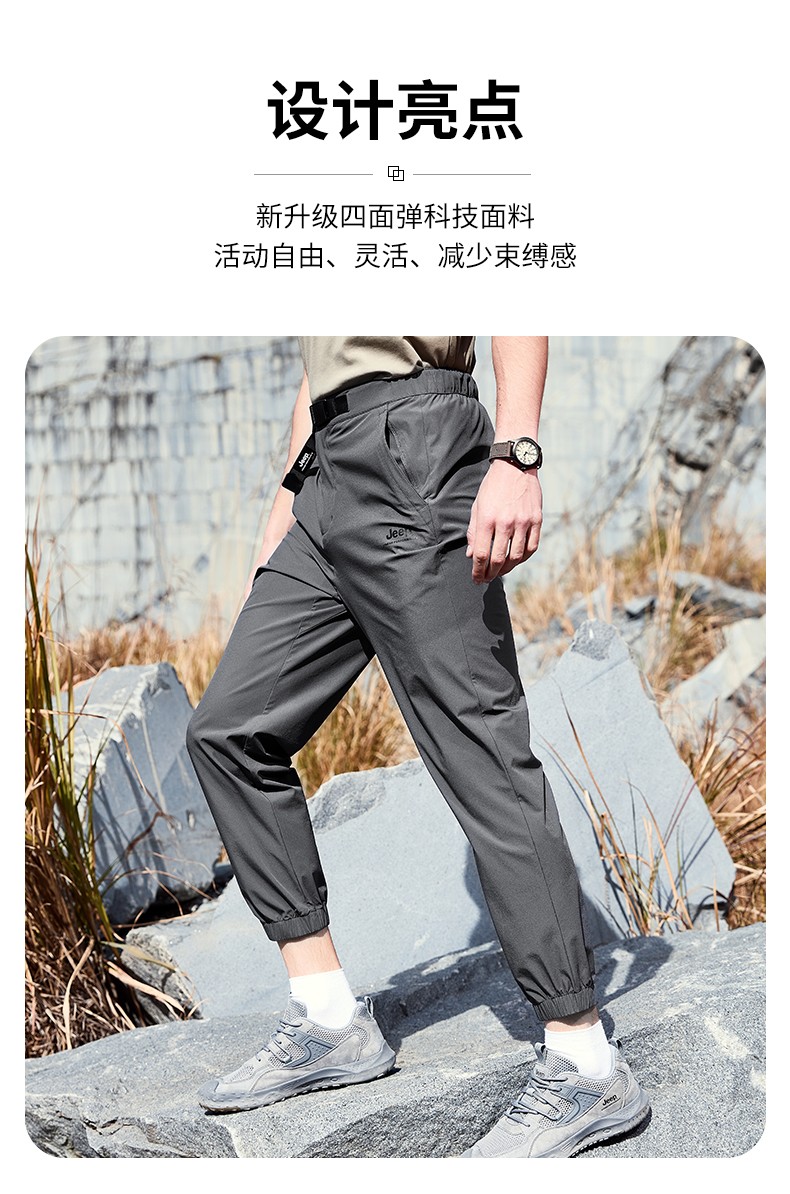 商品名称:Jeep吉普速干裤男夏季薄款upf50+户外防水透气快干裤弹力休闲长裤 J312093835 品牌黑 /深灰 S-4XL 下单请备注颜色尺码