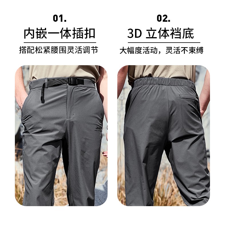 Jeep吉普速干裤男夏季薄款upf50+户外防水透气快干裤弹力休闲长裤 J312093835 品牌黑 /深灰 S-4XL 下单请备注颜色尺码