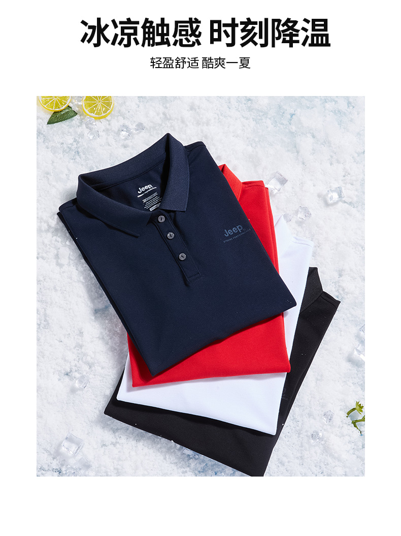 Jeep吉普白色速干T恤清爽翻领冰丝Polo衫女式网球运动打底衫短袖 J122084598 白色/ 藏青/ 品牌黑 /中国红 S-4XL 下单请备注颜色尺码