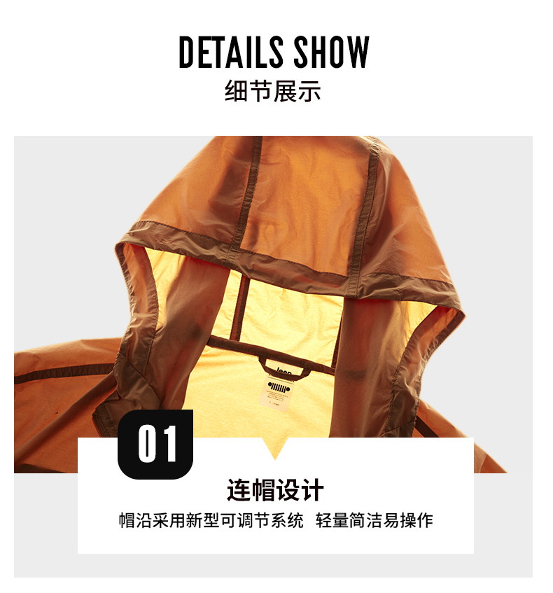 商品名称:Jeep户外防晒衣男士夏季防紫外线轻薄透气皮肤衣防水钓鱼服外套 J112095287 暗橙/ 蓝莓 /浅军 /浅卡其 S-4XL下单请备注颜色尺码