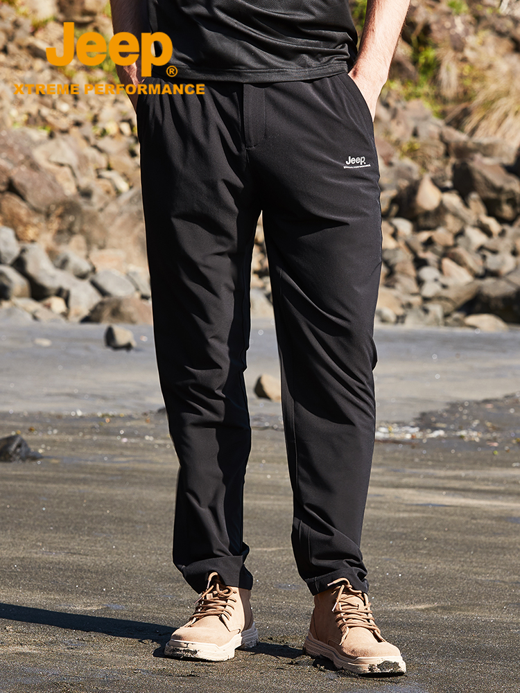 Jeep吉普户外速干裤男薄款徒步长裤宽松大码透气工装裤直筒耐磨夏 J012093834 品牌黑/ 铸钢灰 S-4XL 下单请备注颜色尺码