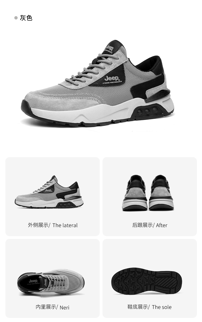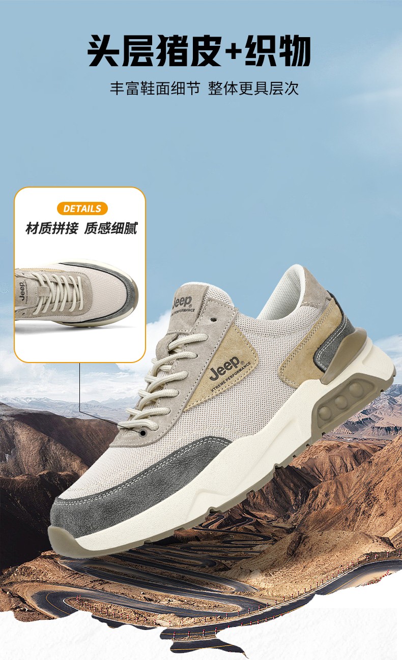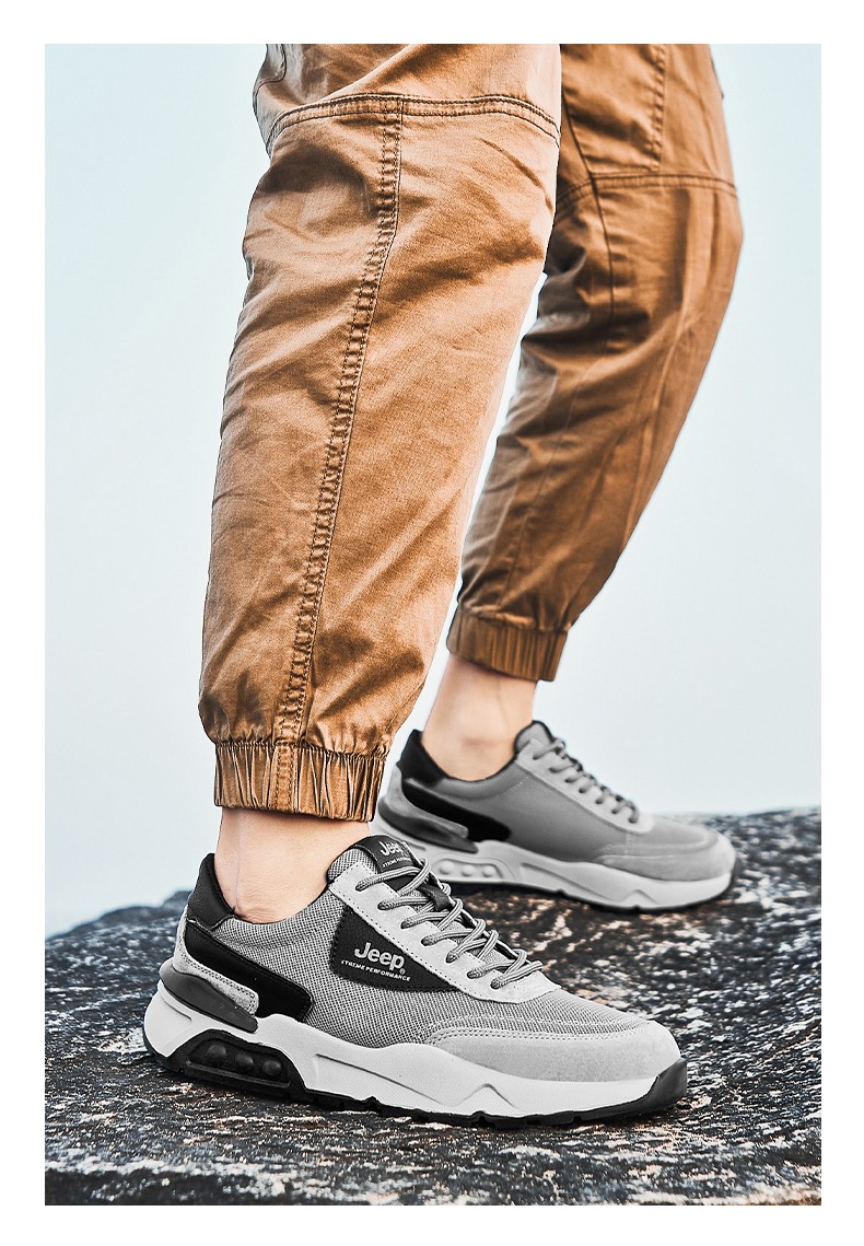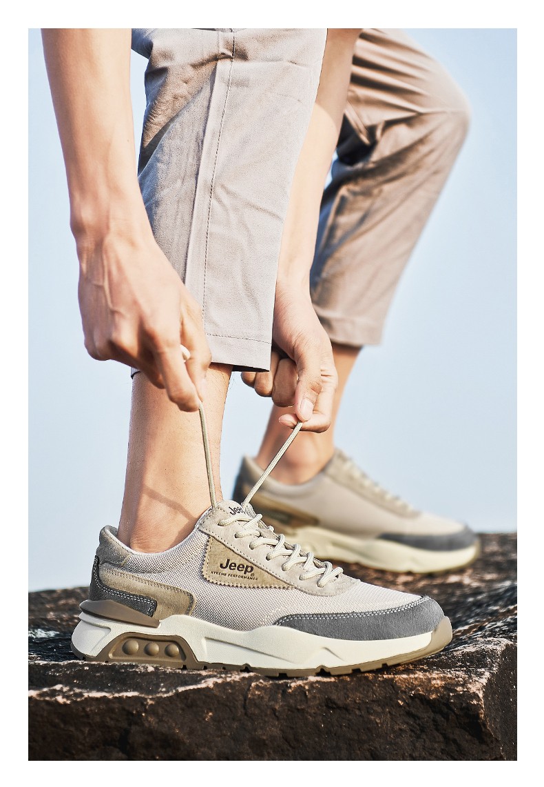 Jeep吉普徒步鞋男户外透气运动跑鞋旅行露营休闲鞋厚底缓震越野登山鞋防滑耐磨作训鞋 P231091208 沙色/灰色 尺码38-44 下单请备注颜色尺码