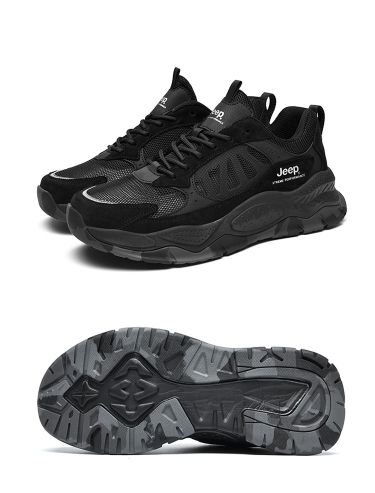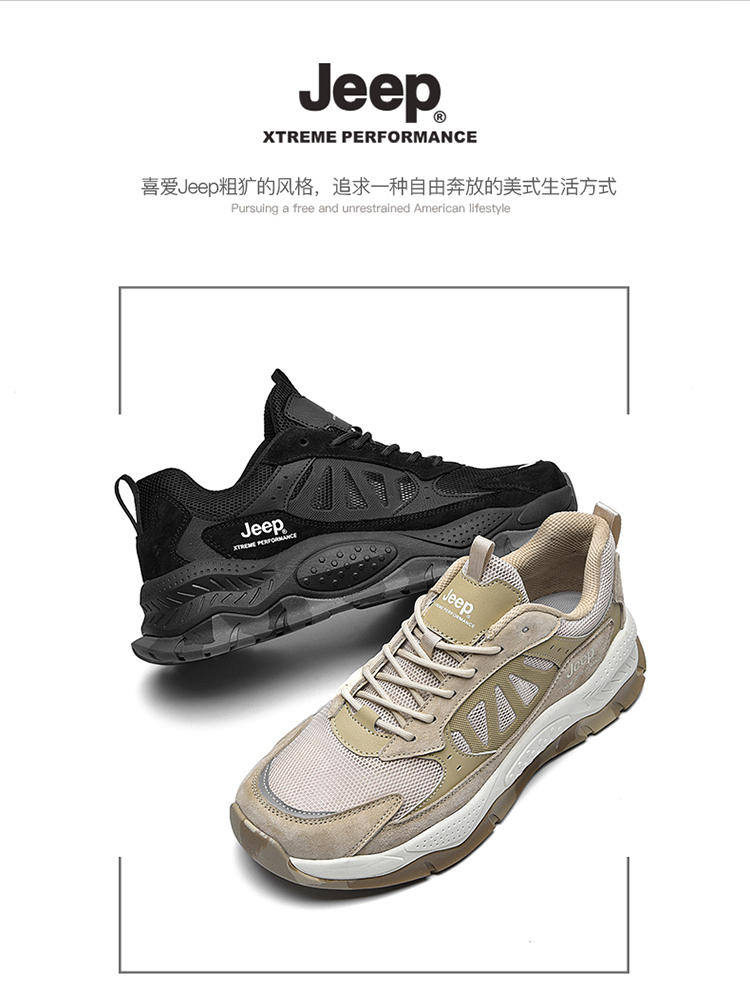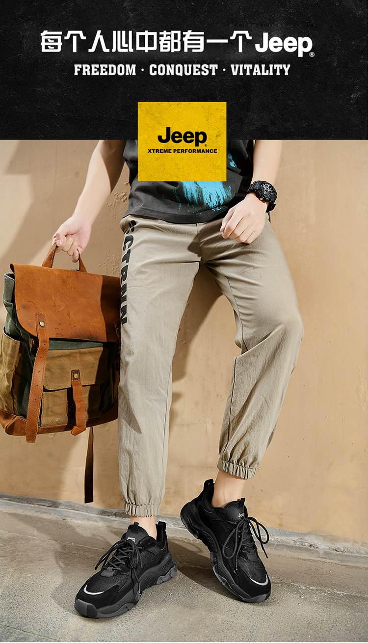 Jeep吉普男鞋户外跑步旅游登山鞋百搭软底运动休闲鞋透气网面鞋子男 P211091239 黑色/浅幽雾绿/沙色 尺码38-44 下单请备注颜色尺码