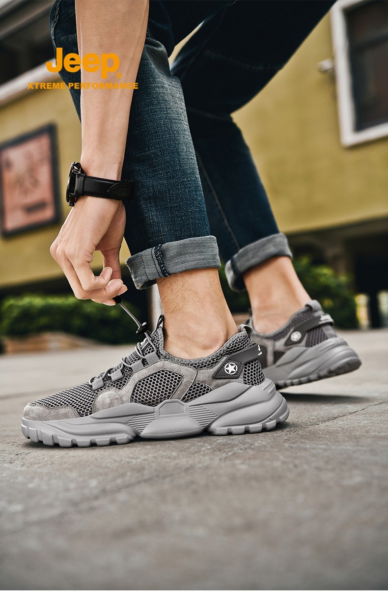 Jeep吉普徒步网鞋男户外运动鞋透气休闲跑步鞋男士防滑耐磨越野登山鞋男 J111091240 灰色/ 沙色 尺码38-44 下单请备注颜色尺码
