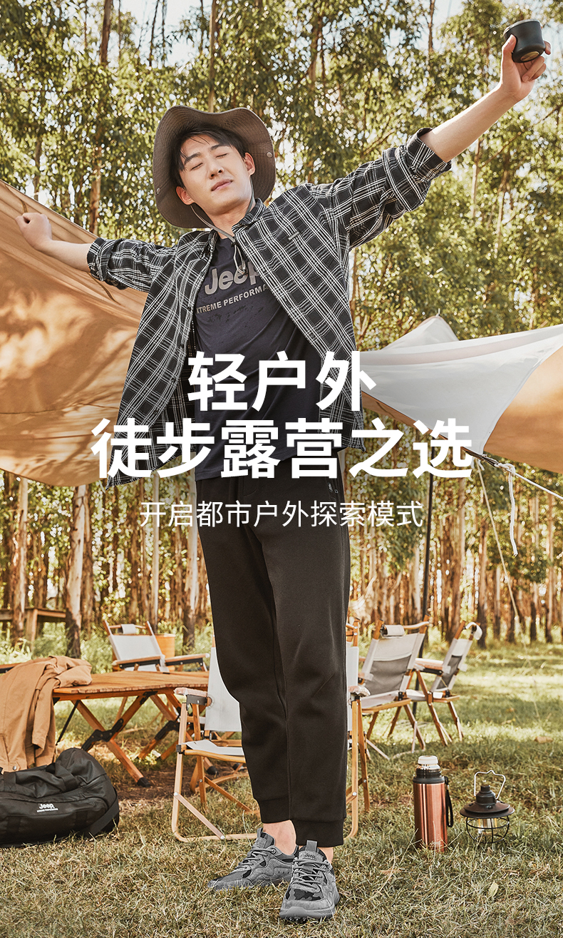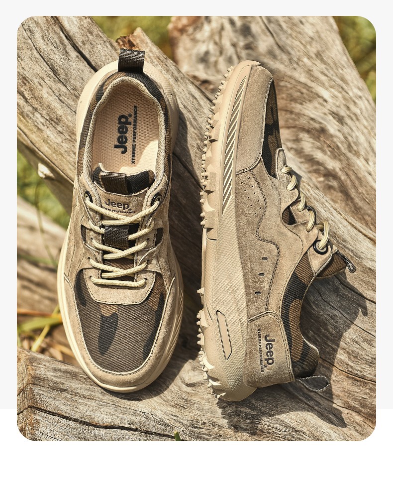 Jeep吉普徒步鞋男缓震运动跑步男鞋户外旅行休闲鞋防滑越野登山鞋抓地耐磨作训鞋 P231091213 灰色/ 卡其 尺码38-44 下单请备注颜色尺码