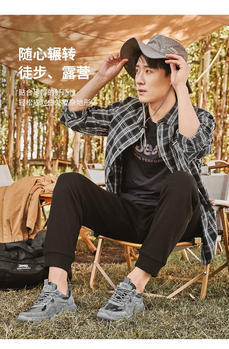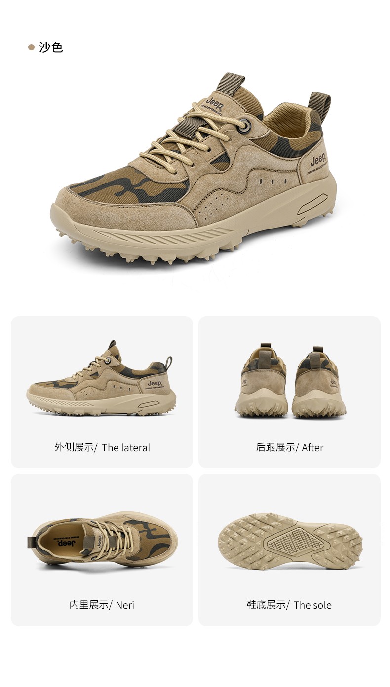 商品名称:Jeep吉普徒步鞋男缓震运动跑步男鞋户外旅行休闲鞋防滑越野登山鞋抓地耐磨作训鞋 P231091213 灰色/ 卡其 尺码38-44 下单请备注颜色尺码