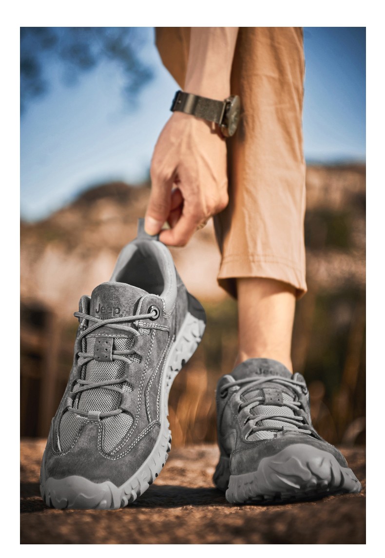 Jeep吉普男鞋轻便透气网面鞋潮户外厚底登山鞋男士复古低帮运动休闲鞋 P311091232 驼色/灰色 尺码38-44 下单请备注颜色尺码