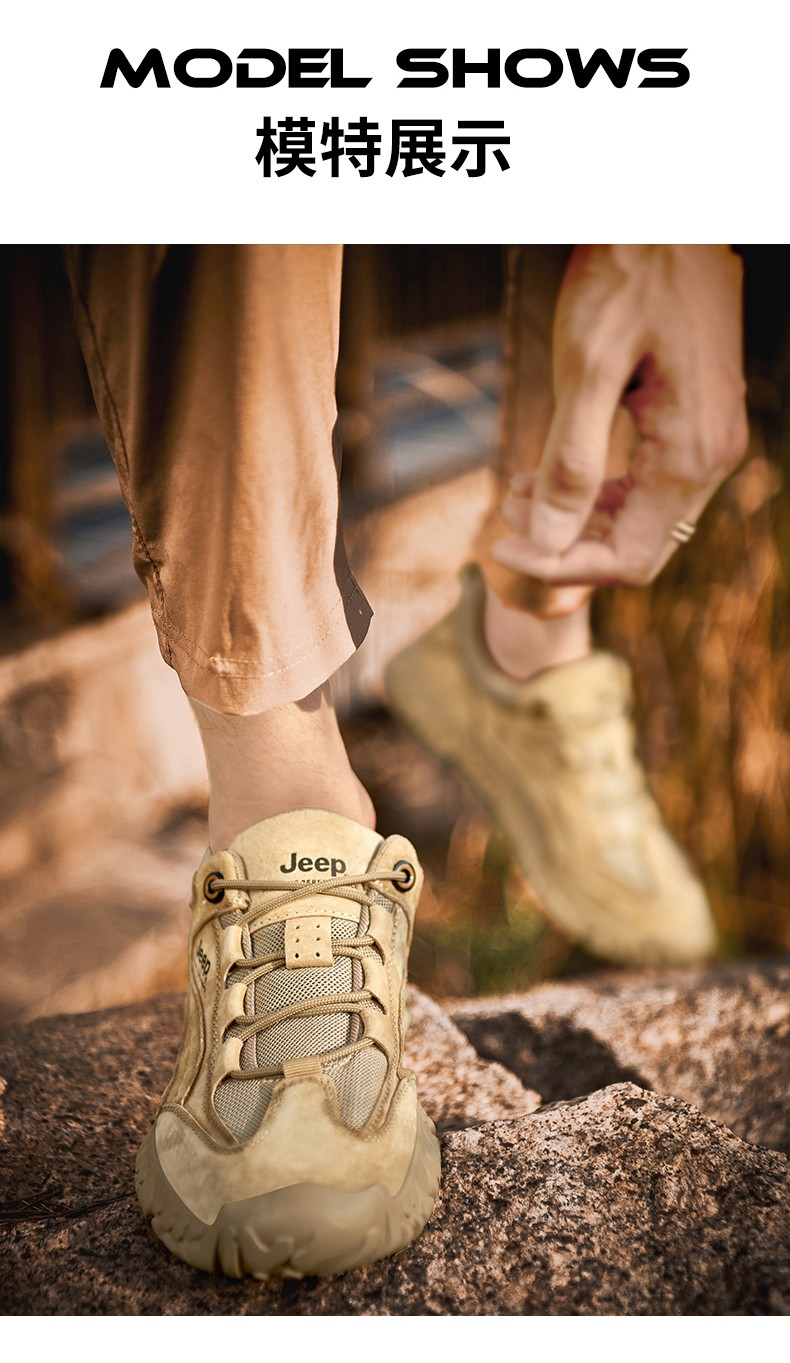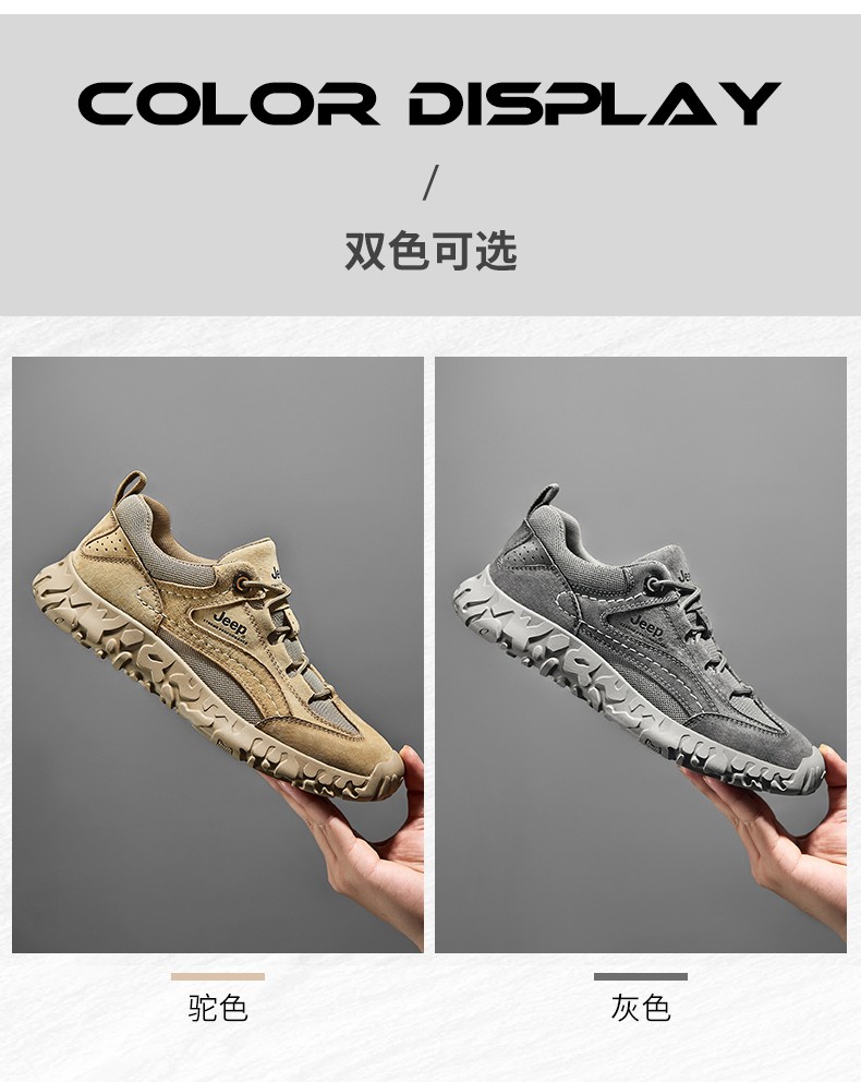 商品名称:Jeep吉普男鞋轻便透气网面鞋潮户外厚底登山鞋男士复古低帮运动休闲鞋 P311091232 驼色/灰色 尺码38-44 下单请备注颜色尺码