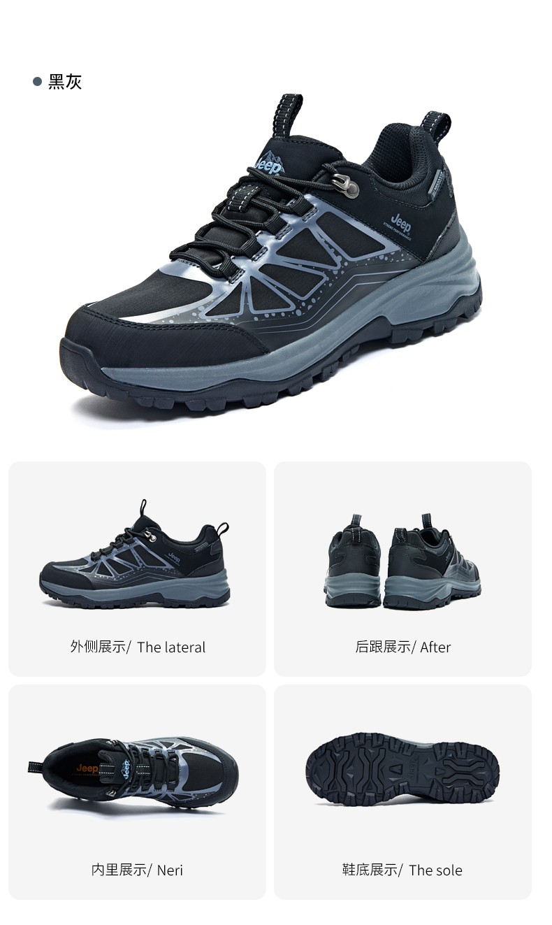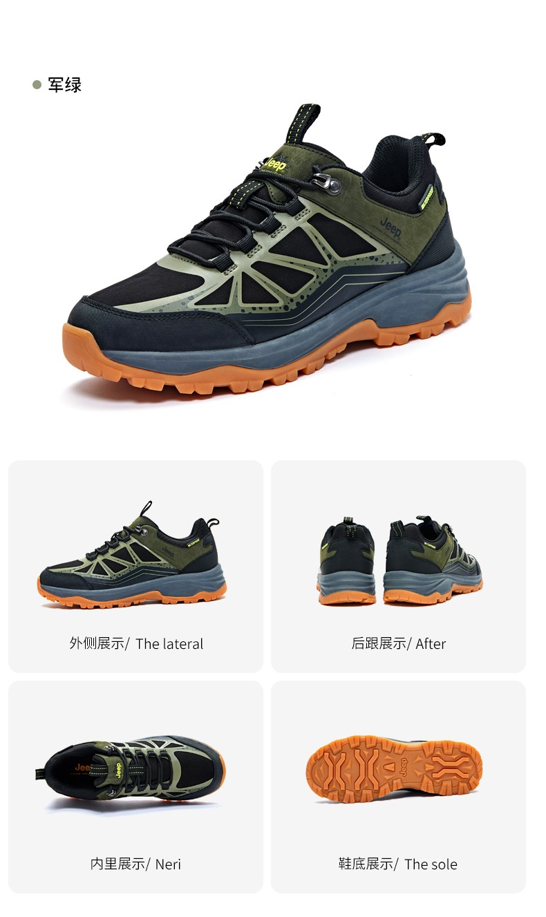 商品名称:Jeep吉普登山鞋男 防水防滑健身运动男鞋防撞护脚减震耐磨作训鞋户外防寒保暖旅行徒步鞋 P2310912608 黑灰/桔黄/军绿 尺码40-45下单请备注颜色尺码