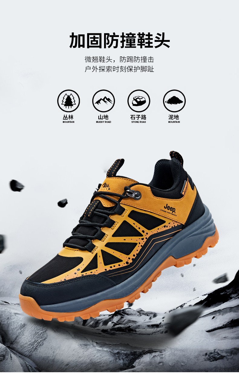 Jeep吉普登山鞋男 防水防滑健身运动男鞋防撞护脚减震耐磨作训鞋户外防寒保暖旅行徒步鞋 P2310912608 黑灰/桔黄/军绿 尺码40-45下单请备注颜色尺码