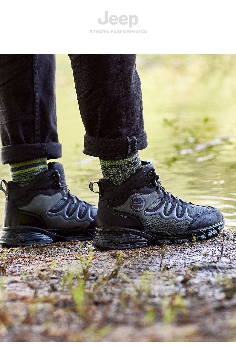 Jeep吉普登山鞋男 防水防滑健身运动男鞋防撞护脚减震耐磨作训鞋户外防寒保暖旅行徒步鞋 p2310911617 灰色/卡其/军绿 尺码39-45下单请备注颜色尺码