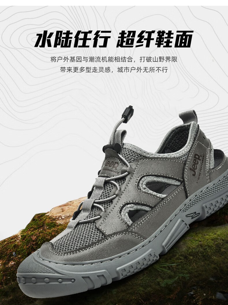 Jeep吉普户外溯溪鞋男士防水鞋快干凉鞋海边沙滩鞋徒步登山鞋休闲鞋P321091501 灰色/卡其 尺码38-44 下单请备注颜色尺码
