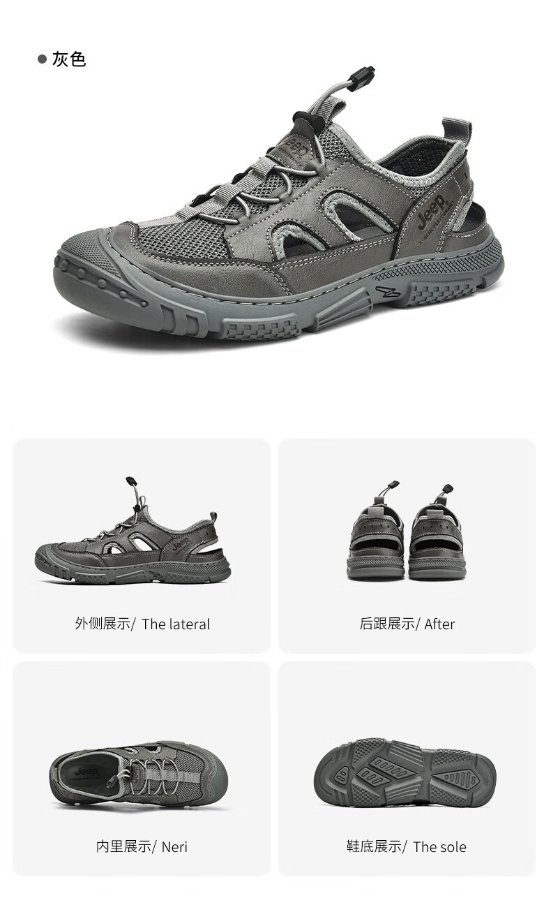 商品名称:Jeep吉普户外溯溪鞋男士防水鞋快干凉鞋海边沙滩鞋徒步登山鞋休闲鞋P321091501 灰色/卡其 尺码38-44 下单请备注颜色尺码