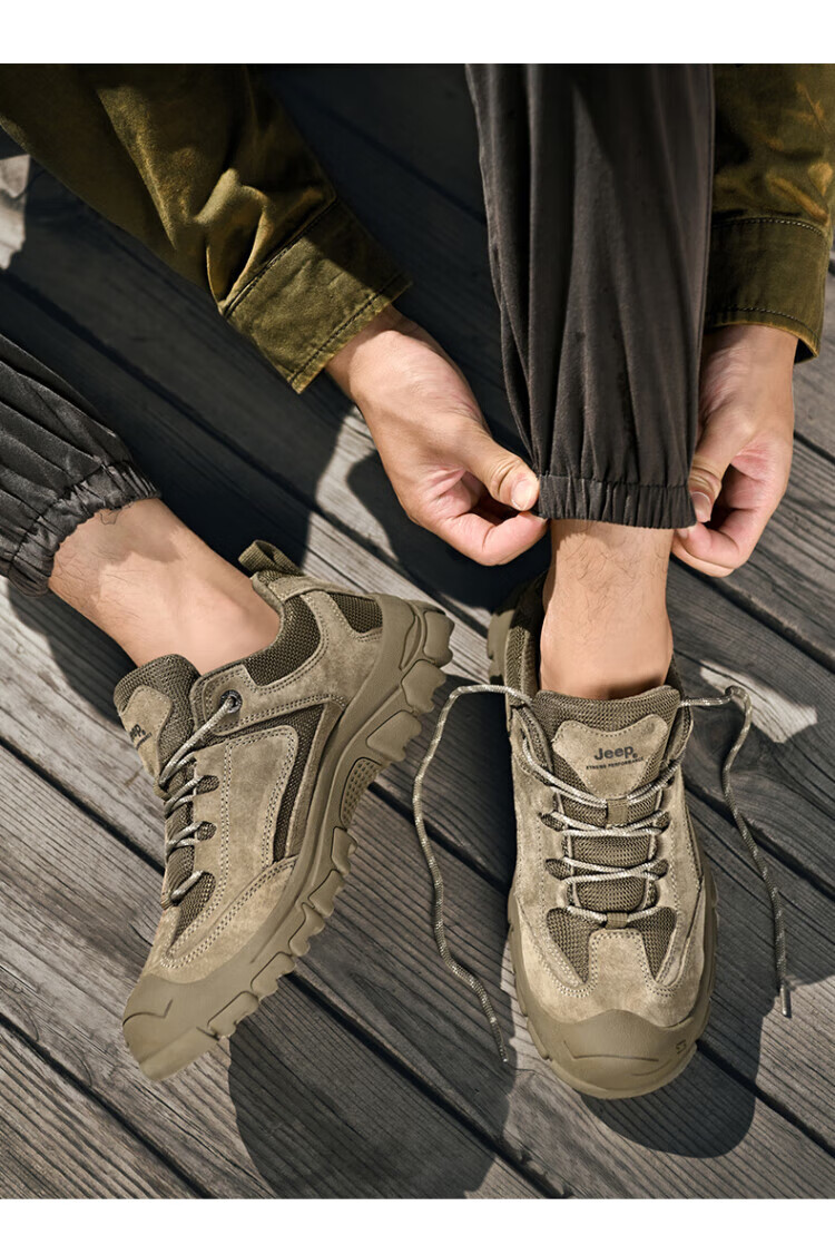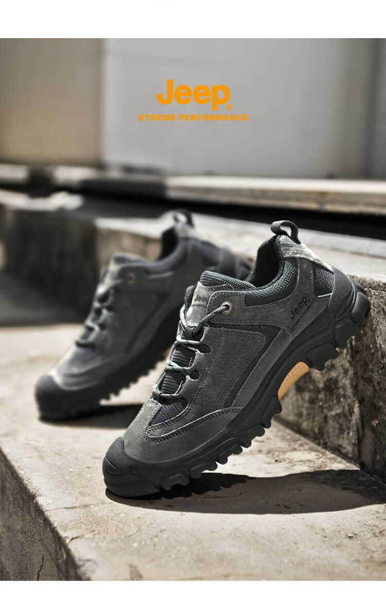 Jeep吉普新品户外徒步鞋男登山鞋女防滑耐磨休闲鞋P131091260(男女同款) 驼色/灰色/云杉黄 尺码36-44 下单请备注颜色尺码