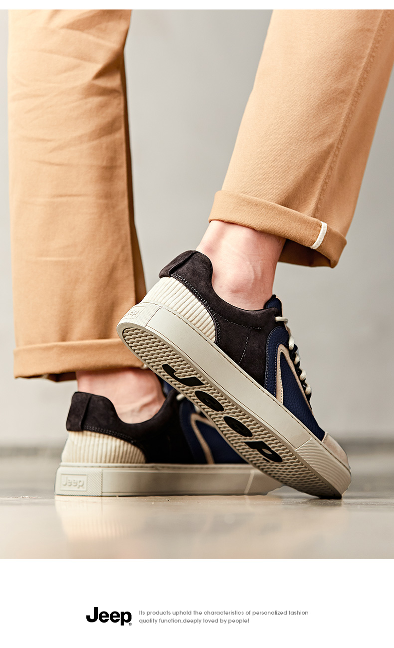 JEEP吉普春季新款潮流时尚运动鞋男士休闲鞋子板鞋流行男鞋 P231M07001 蓝黑色/米沙色 尺码39-45下单请备注颜色尺码