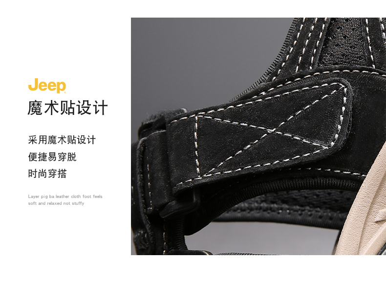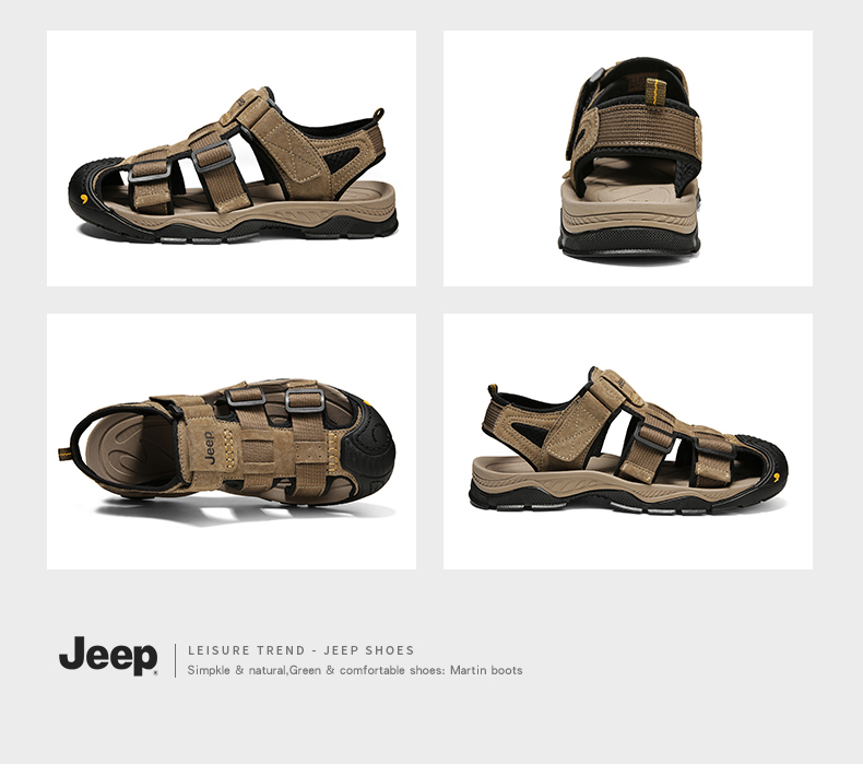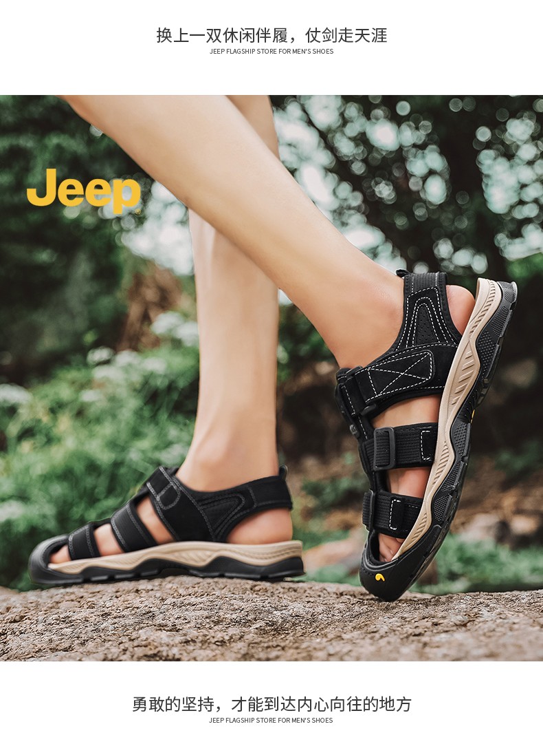 JEEP吉普洞洞沙滩鞋休闲夏季开车真皮拖鞋外穿运动包头凉鞋男 J121591570 卡其/黑色 尺码39-44 下单请备注颜色尺码