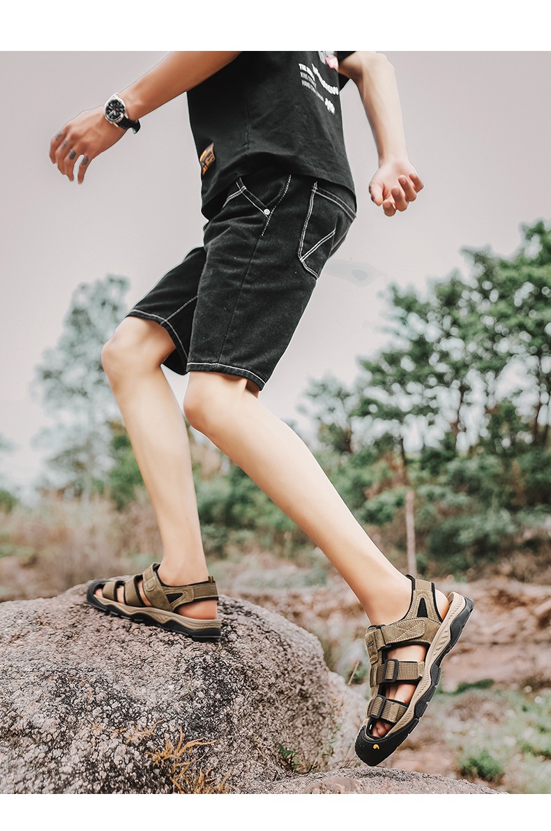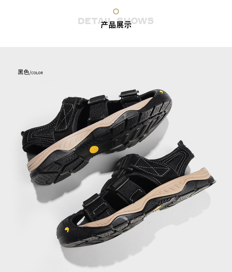 商品名称:JEEP吉普洞洞沙滩鞋休闲夏季开车真皮拖鞋外穿运动包头凉鞋男 J121591570 卡其/黑色 尺码39-44 下单请备注颜色尺码