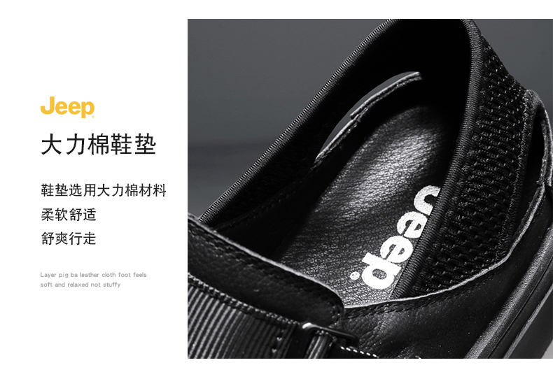 JEEP沙滩鞋夏季真皮拖鞋开车休闲两用外穿运动包头凉鞋男 J121591545 黑色/黄棕 尺码39-44 下单请备注颜色尺码