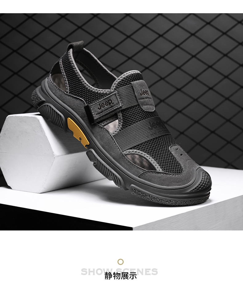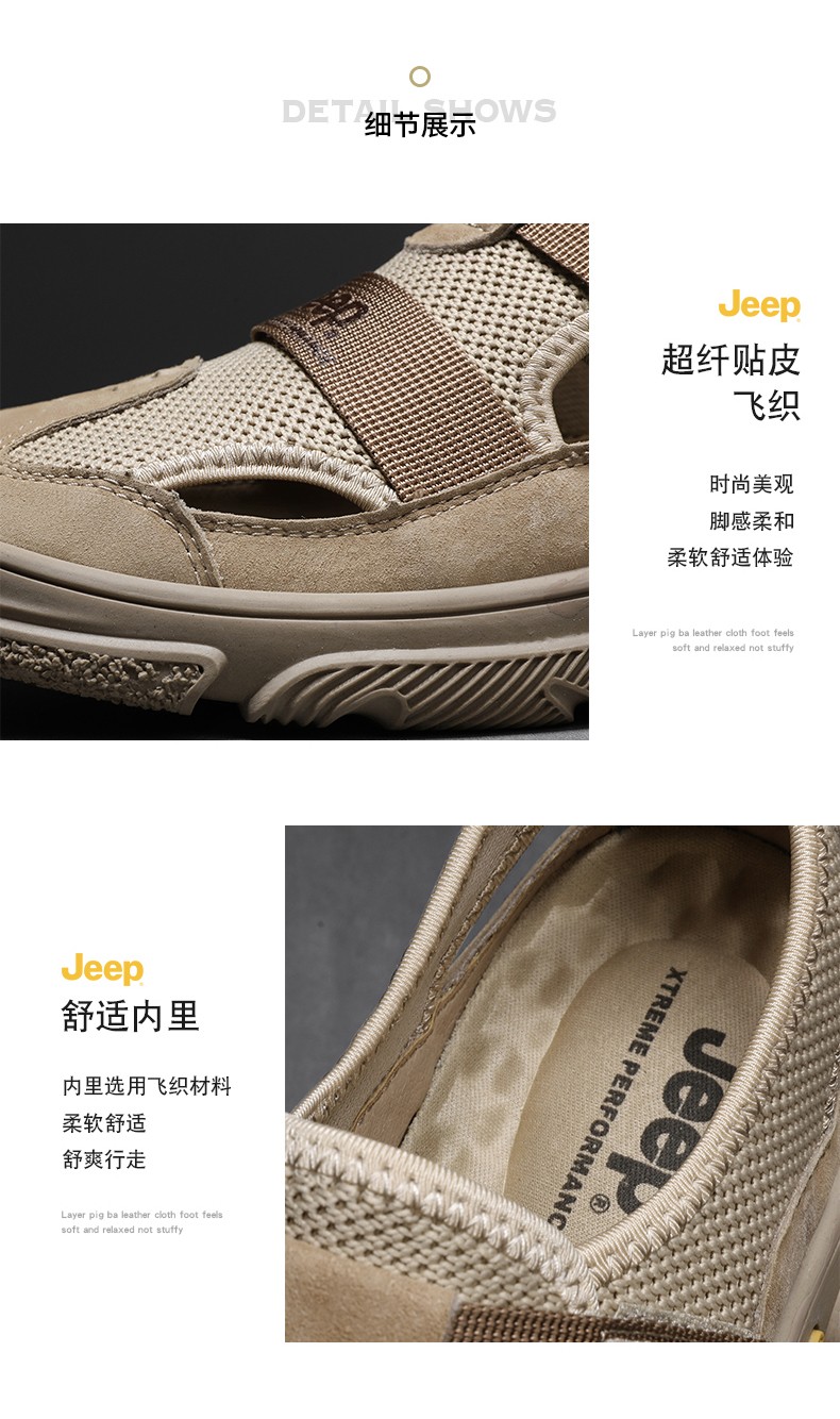商品名称:JEEP吉普包头凉鞋男夏季潮外穿防滑软底开车男士沙滩鞋夏天洞洞鞋 C211591542 沙色/灰色 尺码38-44 下单请备注颜色尺码