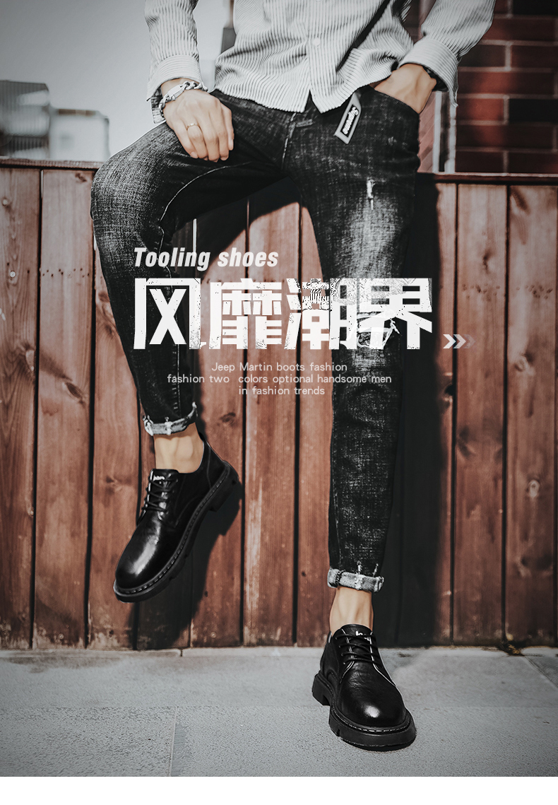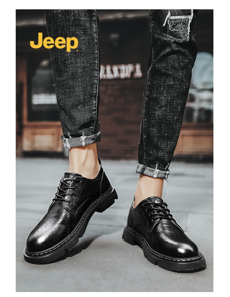 JEEP吉普马丁靴男鞋春季真皮工装靴高帮皮鞋男士雪地靴子 CDRB8852 黑色/卡其色 尺码39-44 下单请备注颜色尺码