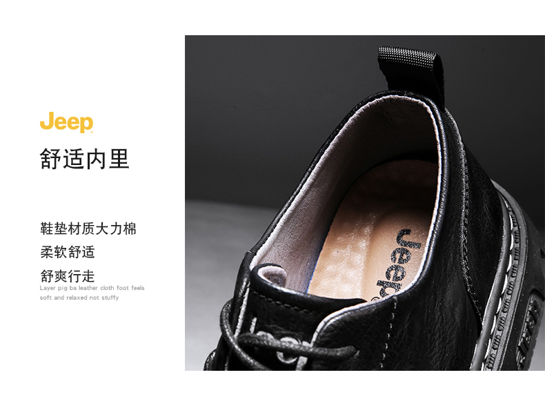 商品名称:JEEP吉普马丁靴男鞋春季真皮工装靴高帮皮鞋男士雪地靴子 CDRB8852 黑色/卡其色 尺码39-44 下单请备注颜色尺码