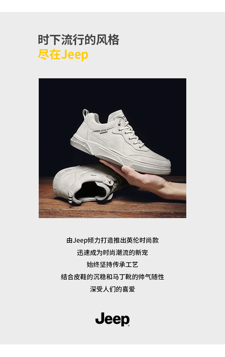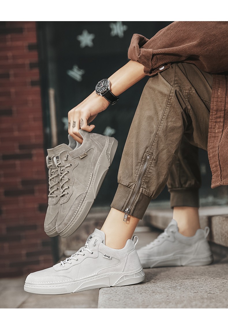 JEEP吉普春季男鞋真皮潮牌休闲鞋子男士板鞋潮鞋 AL9026 沙色/卡其 尺码39-44 下单请备注颜色尺码