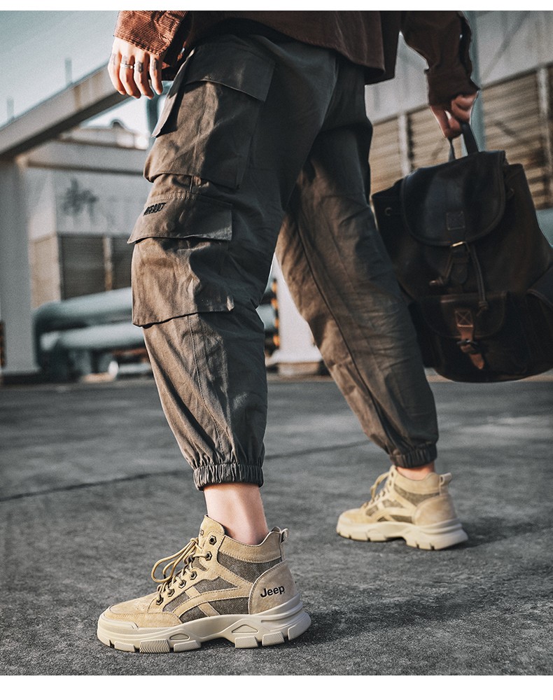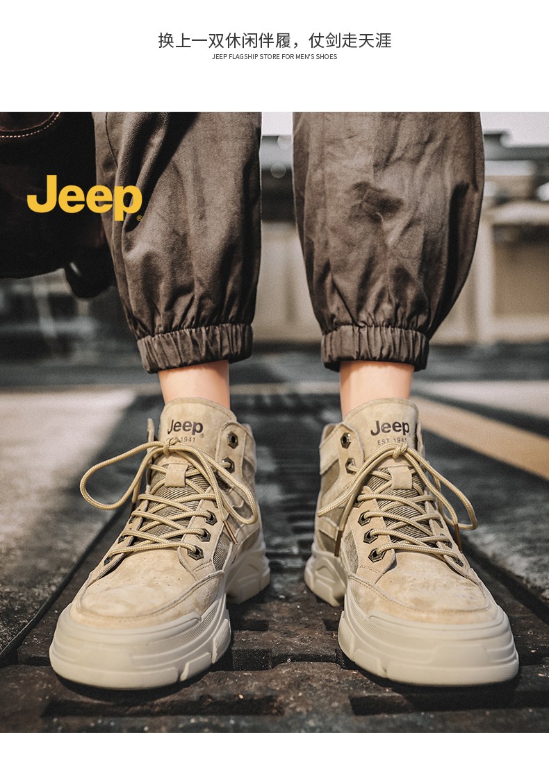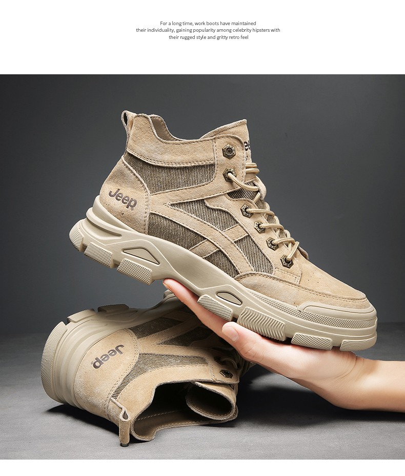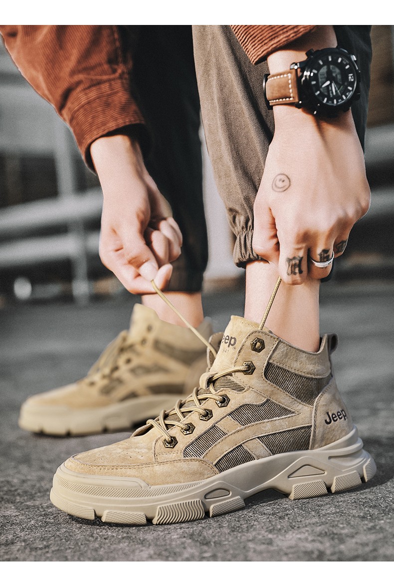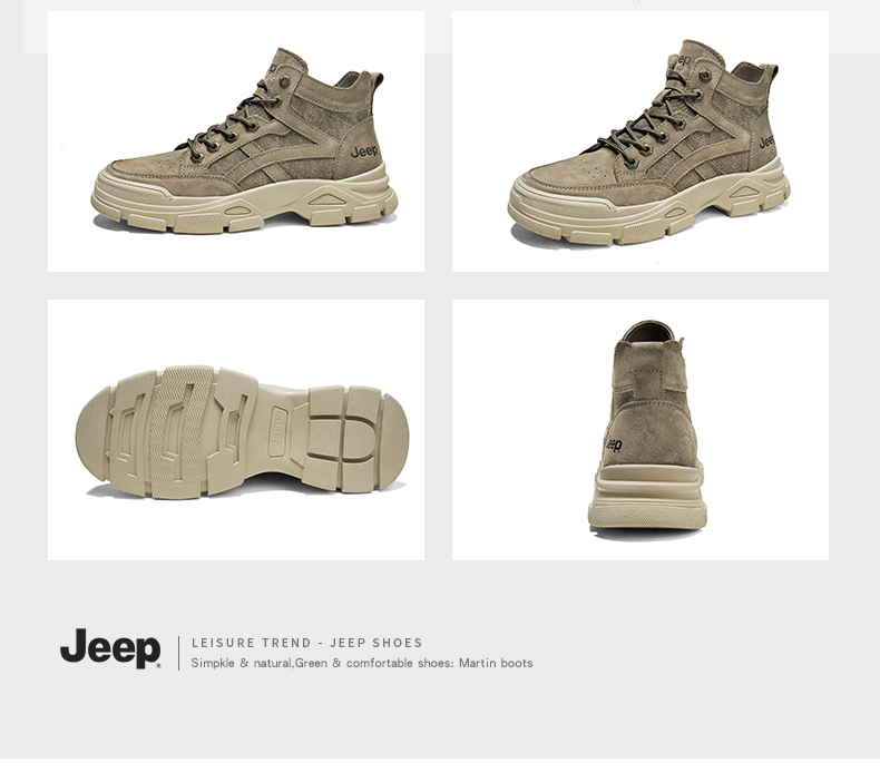 商品名称:JEEP美国吉普马丁靴男士高帮复古男鞋休闲英伦风工装靴子 C214M06050 沙色/太空灰色/深卡其 尺码38-44 下单请备注颜色尺码