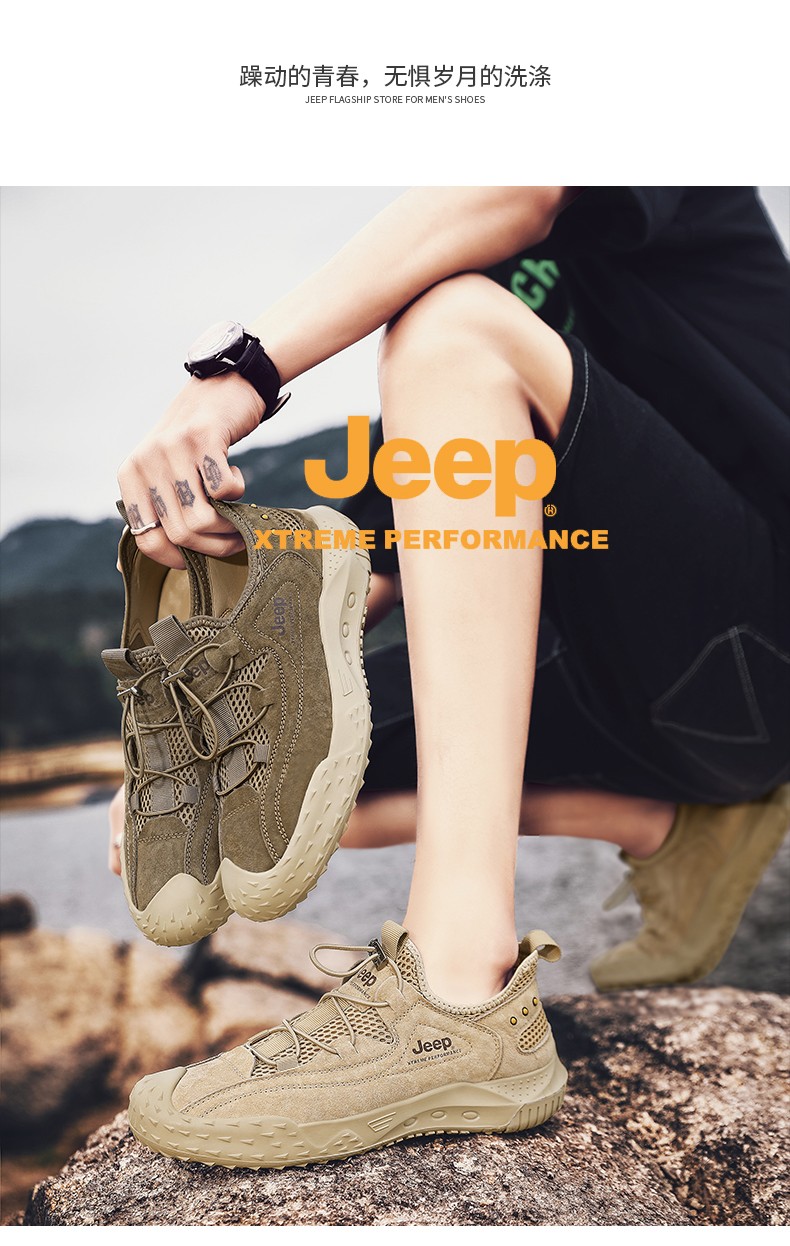 JEEP吉普男鞋夏季户外登山软底运动鞋男士透气百搭休闲鞋 C311591289 沙色/灰色/卡其色 尺码38-44下单请备注颜色尺码