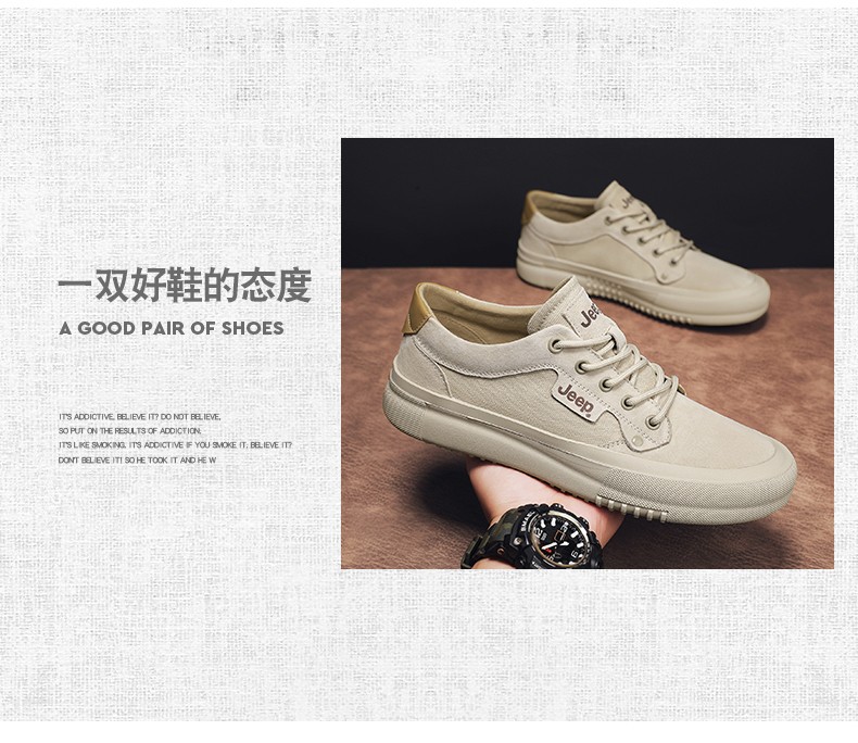 商品名称:JEEP吉普男鞋夏季潮流休闲布鞋男款春秋透气运动帆布板鞋 C231M07294 沙色/卡其色 尺码38-44下单请备注颜色尺码