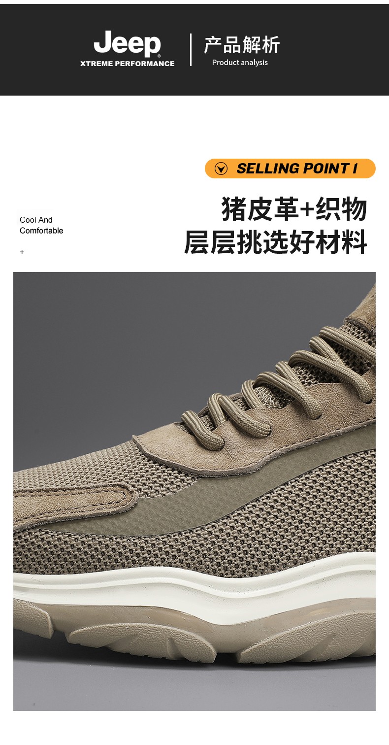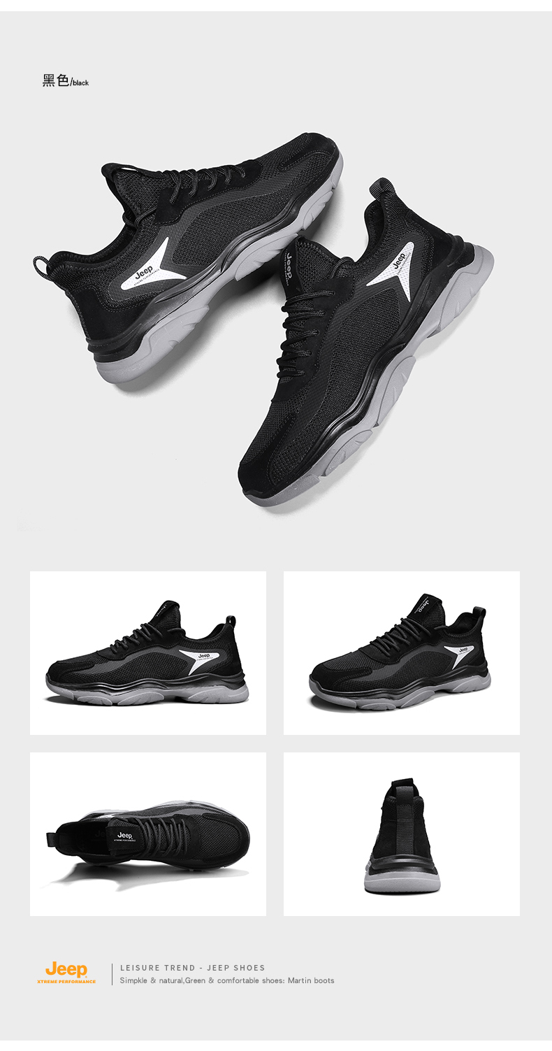 商品名称:JEEP吉普男鞋夏季透气网面运动鞋百搭潮流夏天飞织跑步鞋 C311591293 黑色/卡其色 尺码39-44 下单请备注颜色尺码