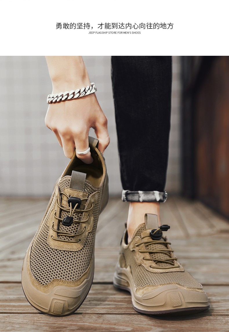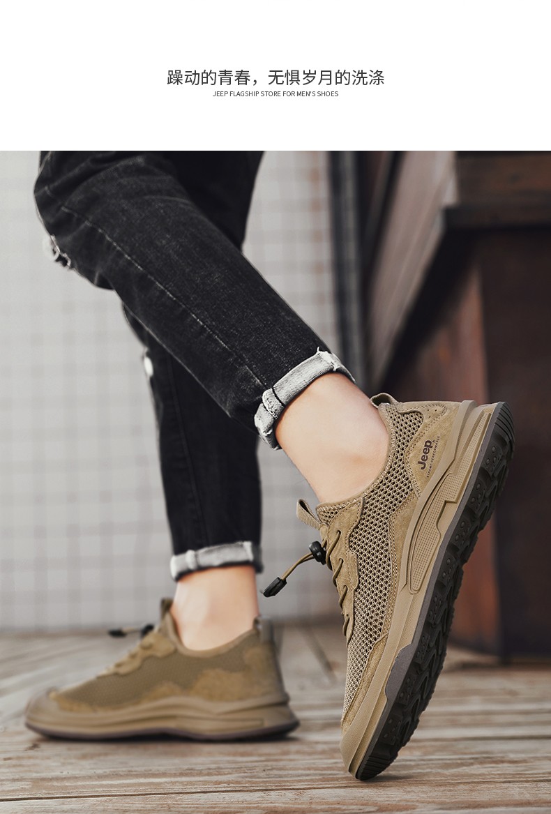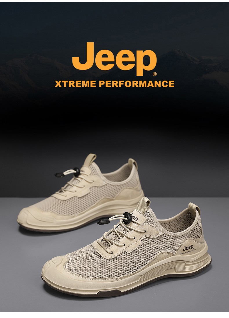 JEEP吉普男鞋夏季户外透气网面鞋轻便防滑软底大码运动休闲鞋 C321591602 沙色/卡其色 尺码39-44下单请备注颜色尺码