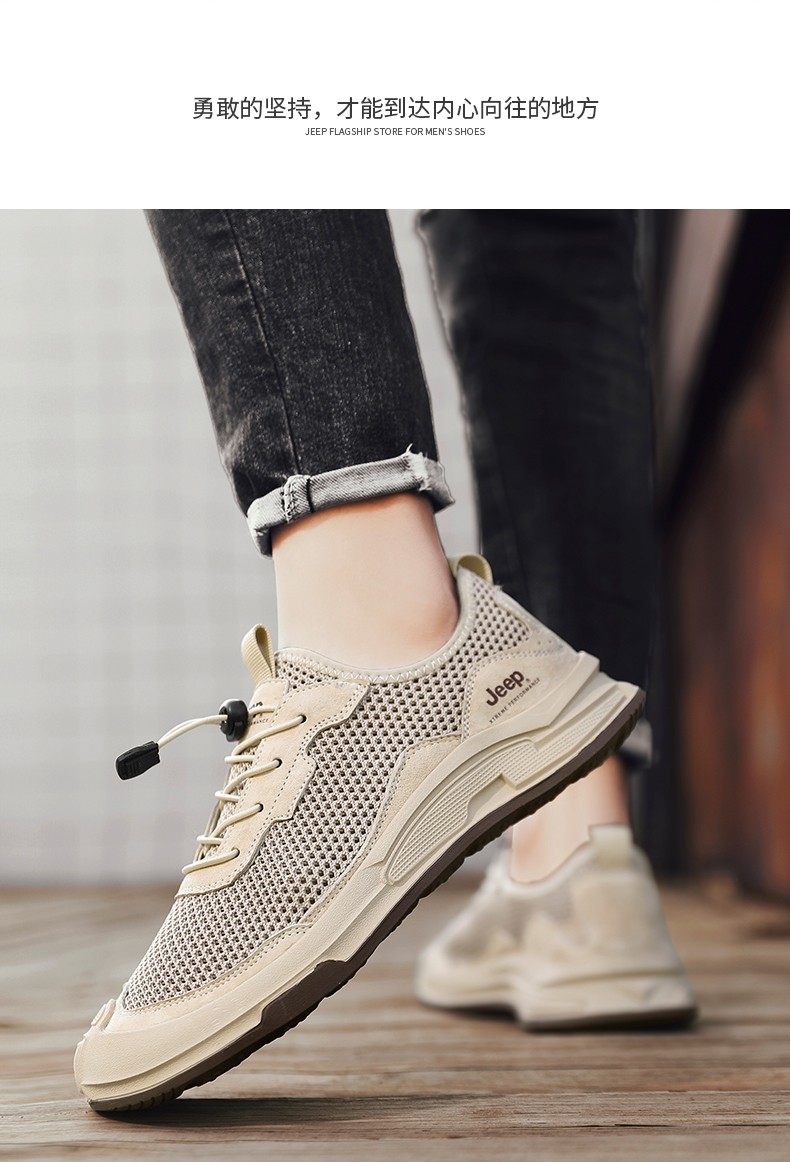 商品名称:JEEP吉普男鞋夏季户外透气网面鞋轻便防滑软底大码运动休闲鞋 C321591602 沙色/卡其色 尺码39-44下单请备注颜色尺码