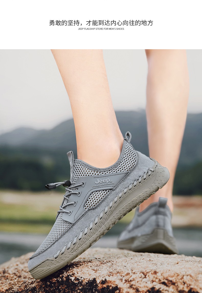 商品名称:JEEP吉普男鞋夏季透气网面运动休闲复古镂空薄款男士网鞋 C321591213 沙色/灰色 尺码38-44 下单请备注颜色尺码