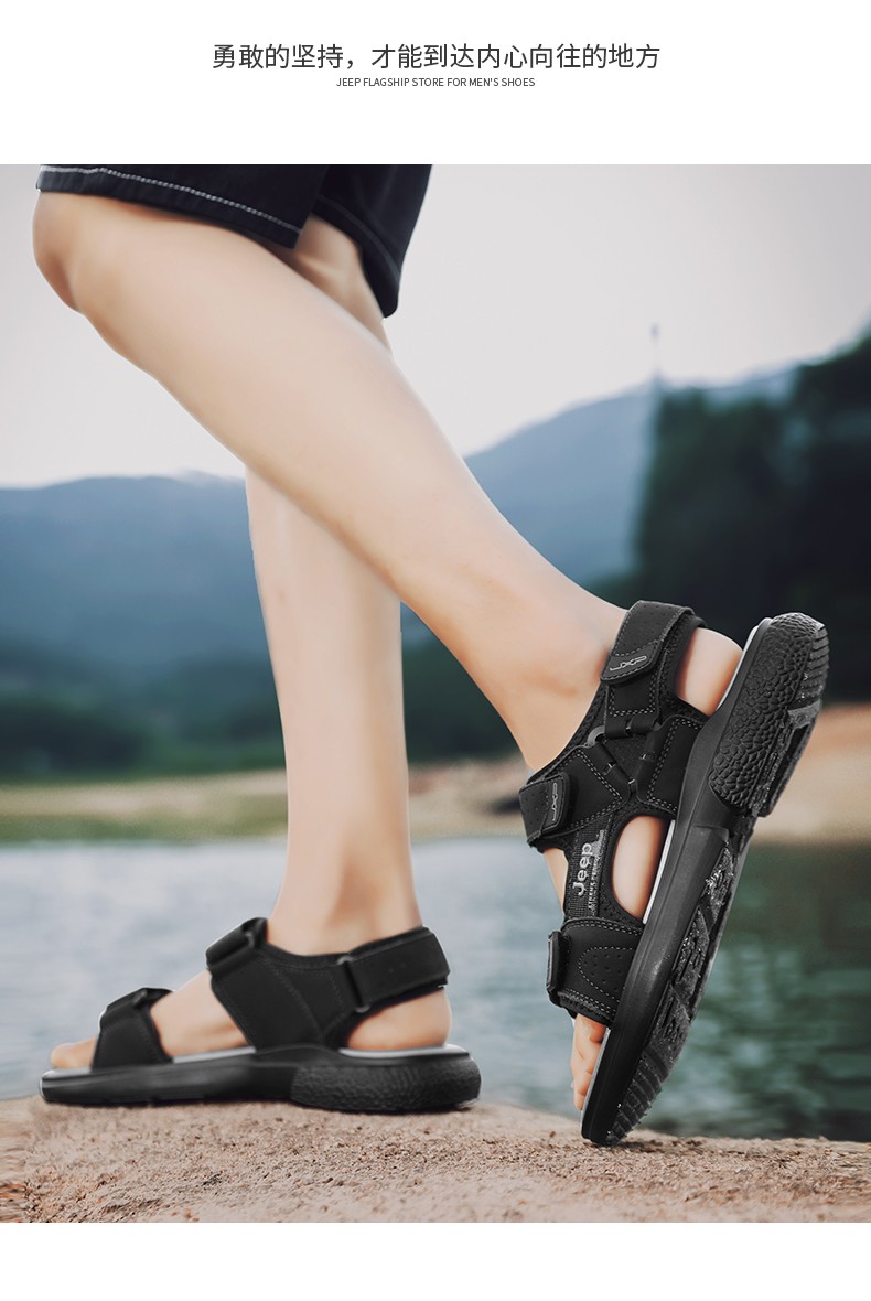 商品名称:JEEP吉普夏季凉鞋男运动休闲外穿防滑软底轻便开车男款夏天沙滩鞋 C321591524 黑色/暗棕 尺码39-44 下单请备注颜色尺码