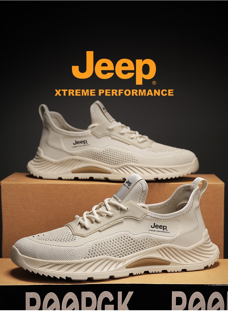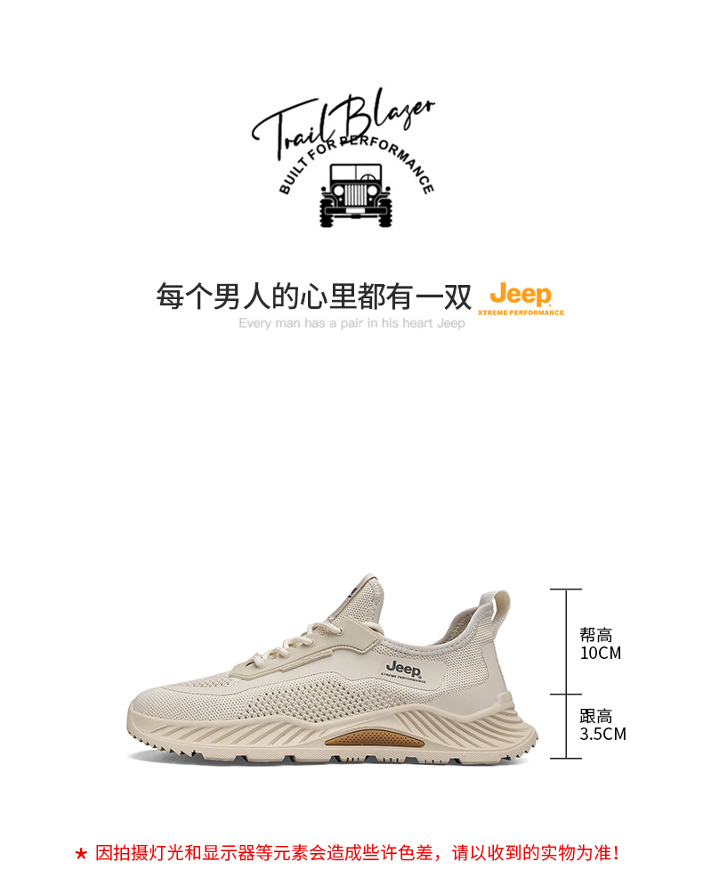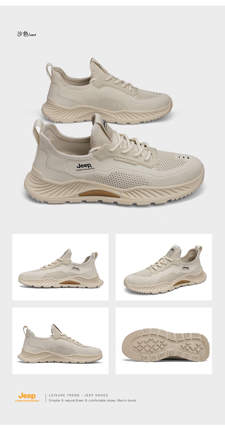 JEEP吉普男鞋夏季透气运动鞋黑色薄款休闲轻便飞织休闲鞋 C321591237 沙色/黑色 尺码39-44 下单请备注颜色尺码