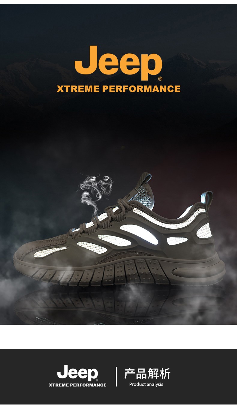 JEEP吉普男鞋夏季百搭轻便运动休闲鞋男网面透气飞织潮鞋 C321591243 黑色/杏色 尺码39-44下单请备注颜色尺码