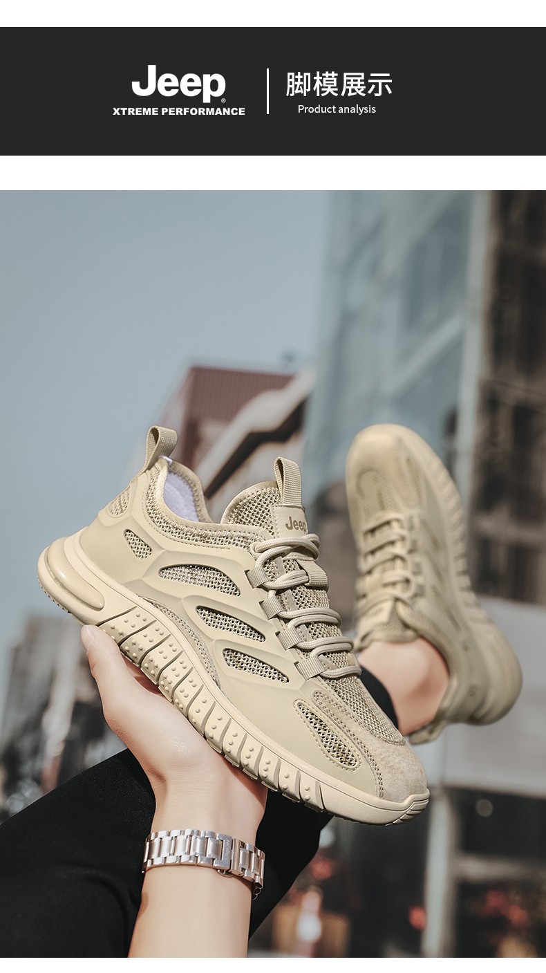 商品名称:JEEP吉普男鞋夏季百搭轻便运动休闲鞋男网面透气飞织潮鞋 C321591243 黑色/杏色 尺码39-44下单请备注颜色尺码