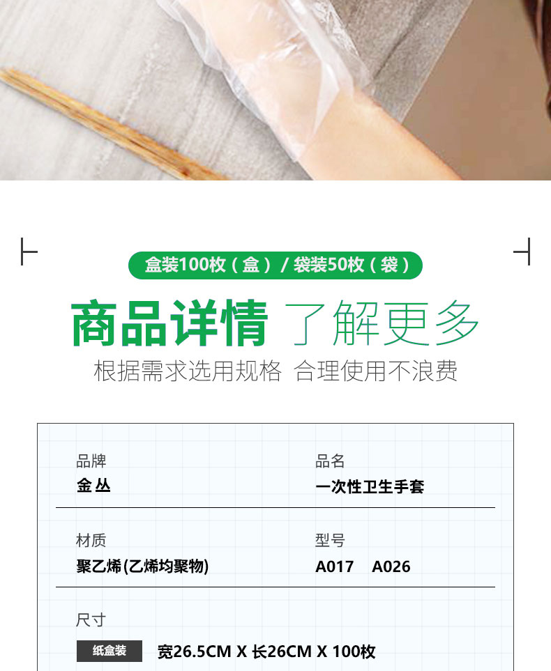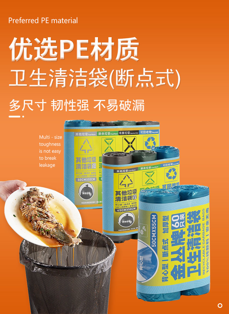 商品名称:金丛牌 卫生清洁袋垃圾分类三合一50cm*55m*60只*2组+ 一次性手套 PE材质 1袋*50只 A021