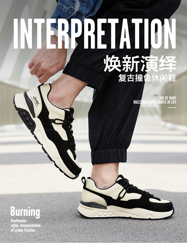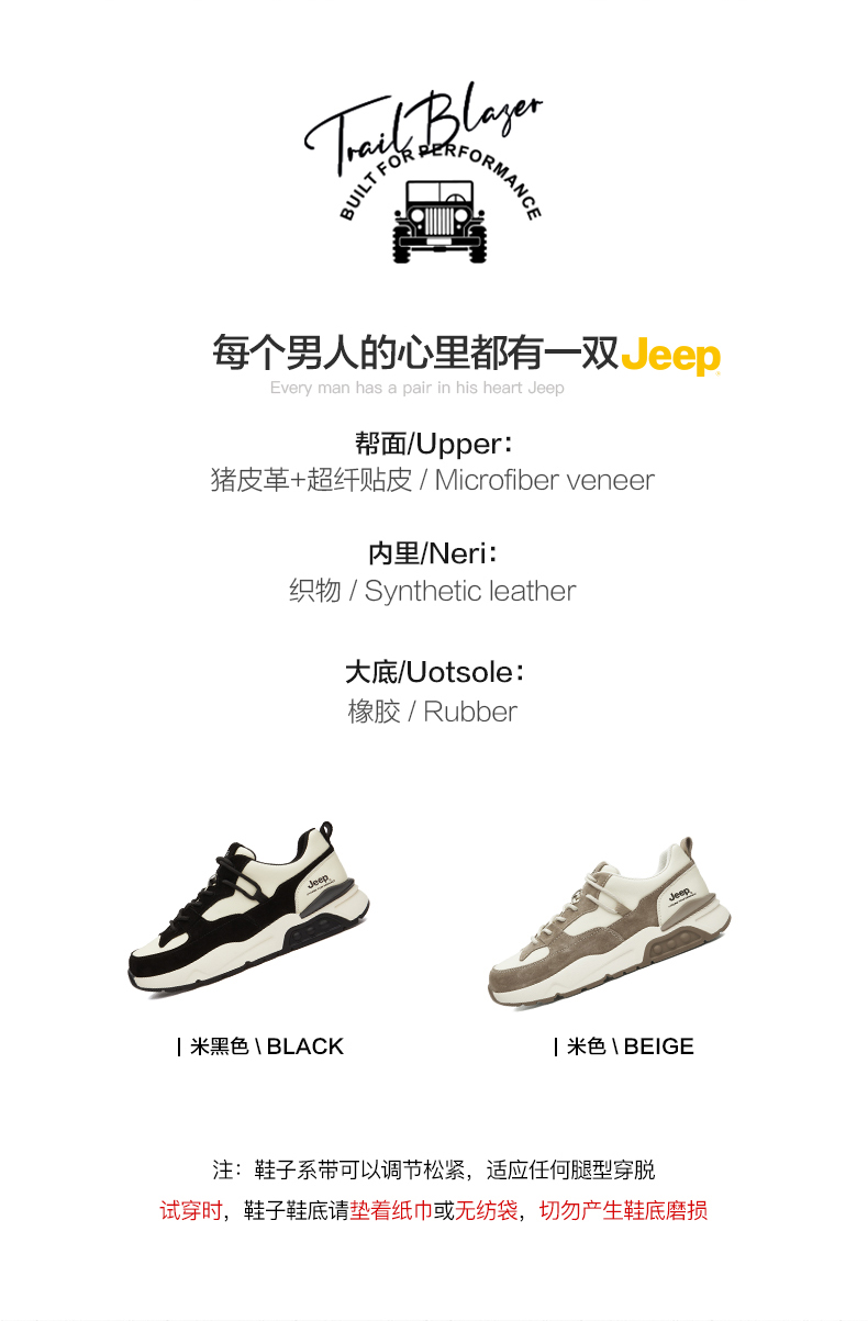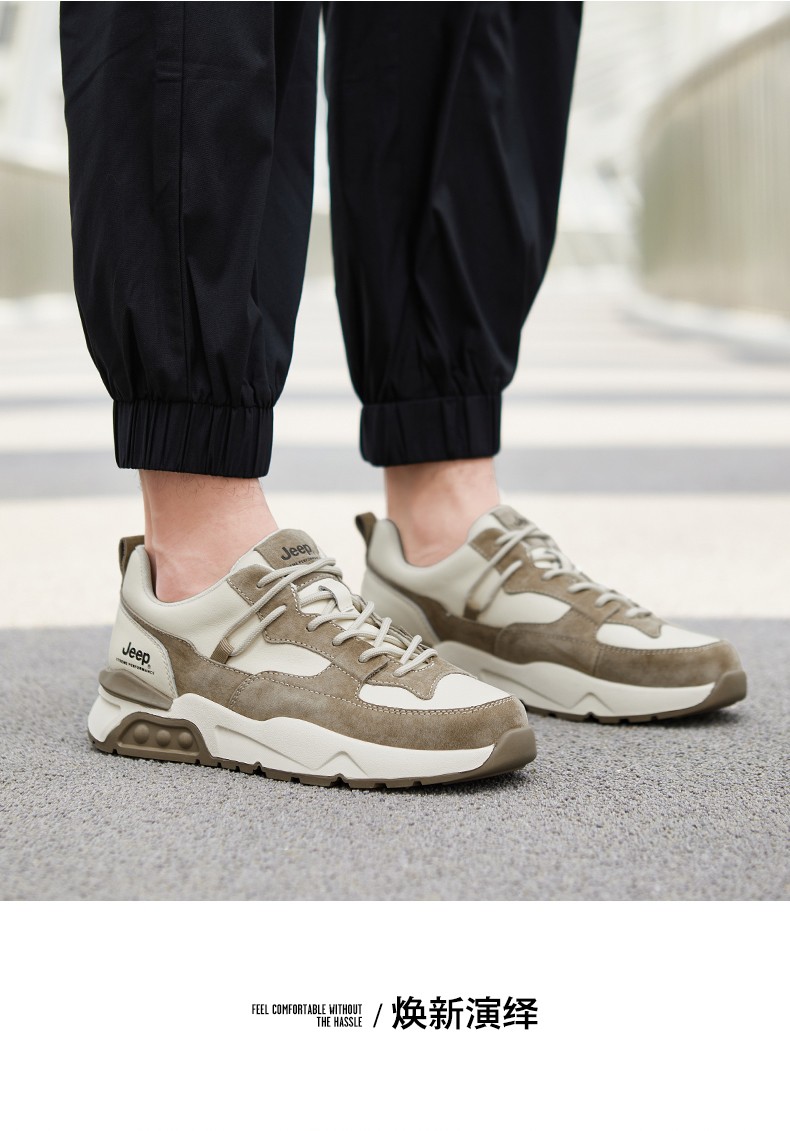 JEEP吉普秋冬季男鞋户外时尚百搭男鞋耐磨休闲运动板鞋男P231591204 米色 /米黑 尺码39-45下单请备注颜色尺码