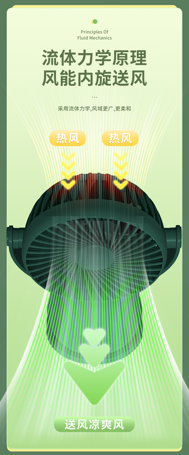 商品名称:澳柯玛升级款蓄电五叶台夹扇FSS-B302 绿色