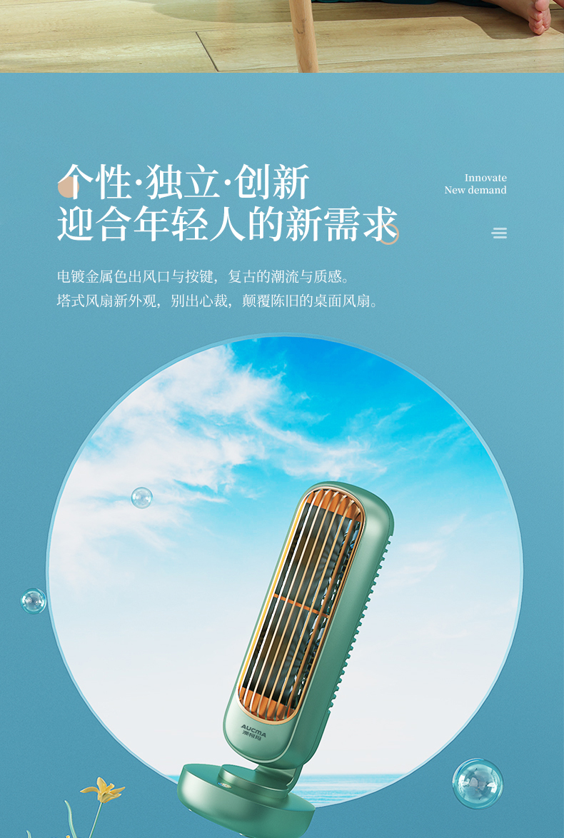 澳柯玛USB蓄电款台式小塔扇FSS-B201