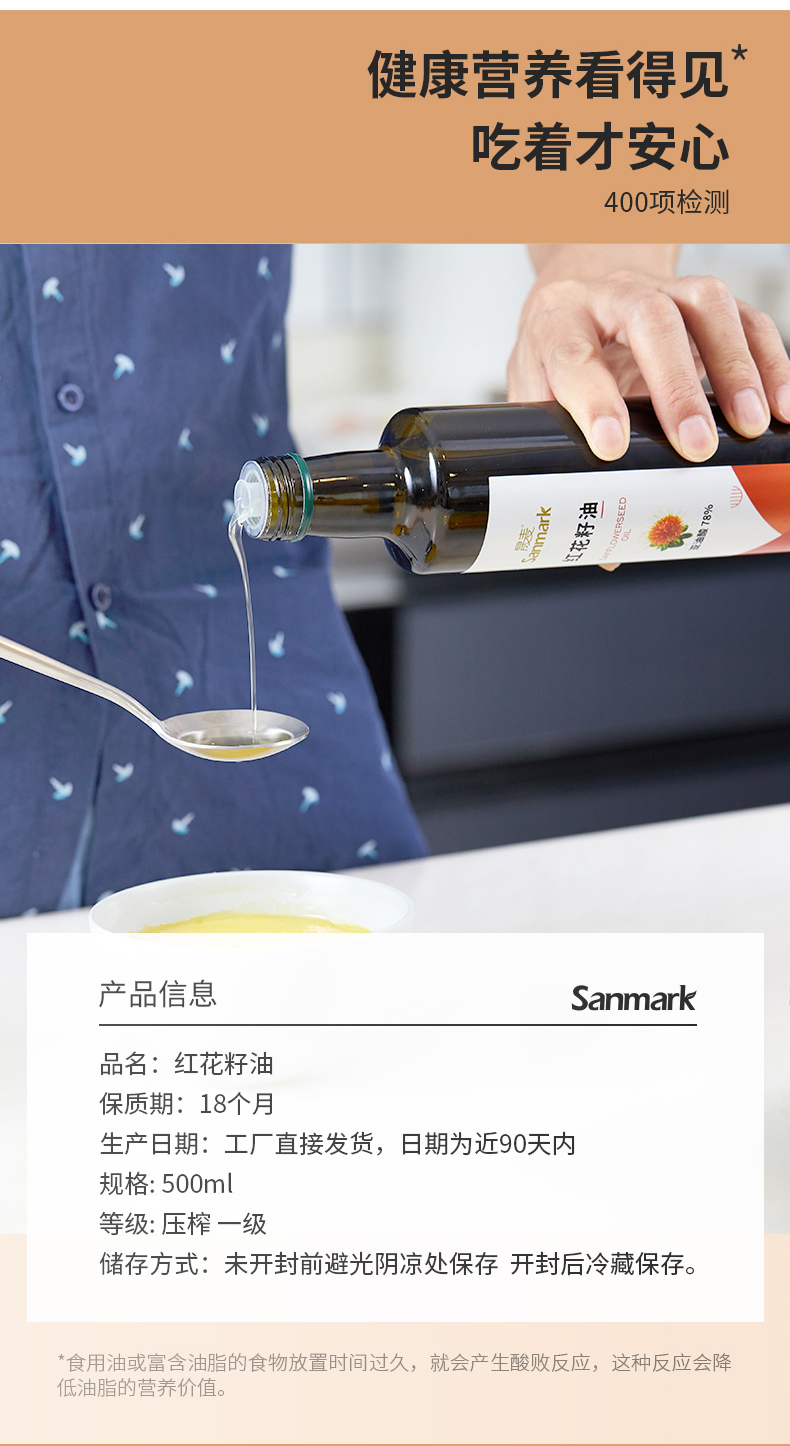商品名称:晟麦红花籽油500ml 初冷榨一级植物油亚油酸纯红花子籽食用油烹饪