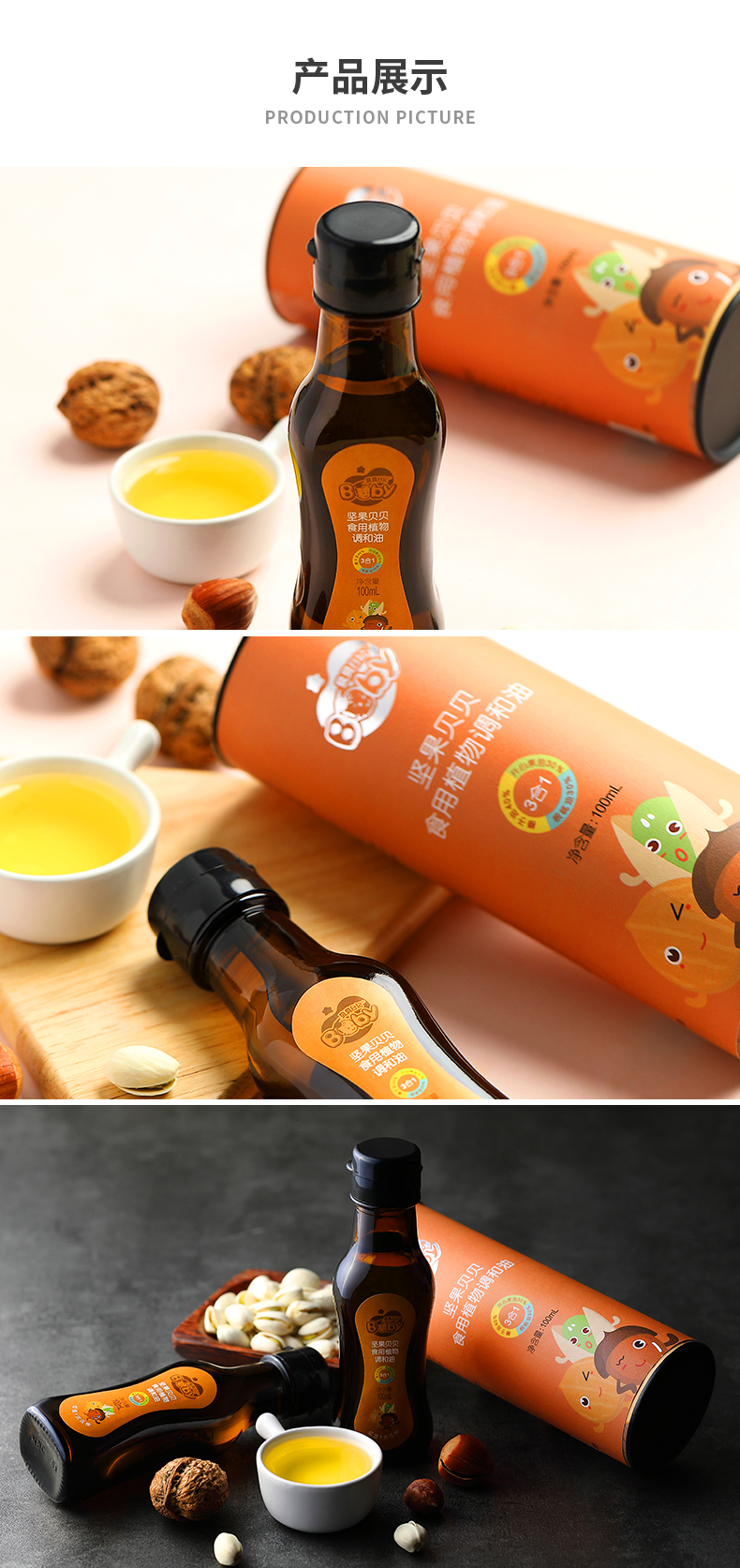 商品名称:晟麦贝贝日记坚果油100ml 每日榛子核桃油开心果油食用植物调和油