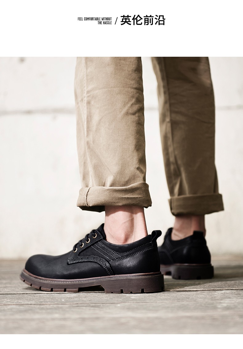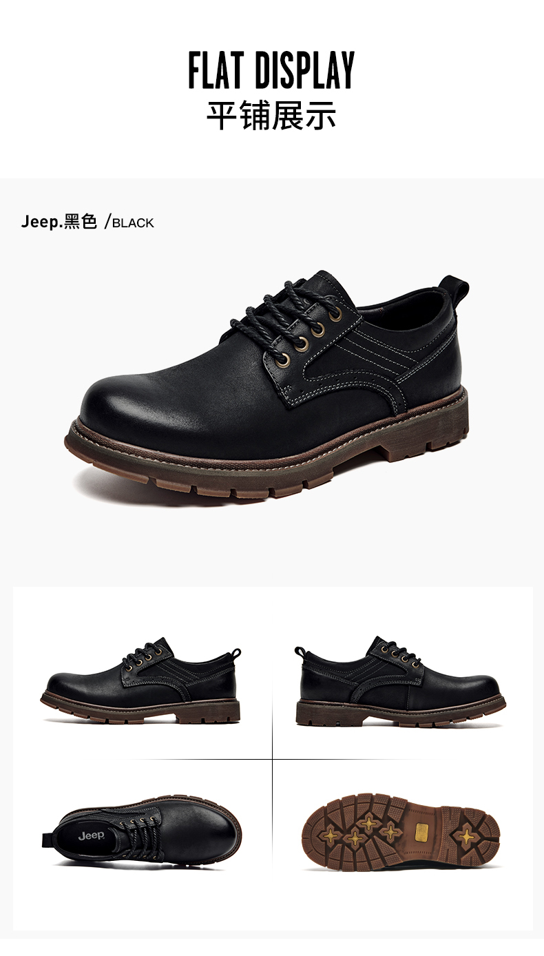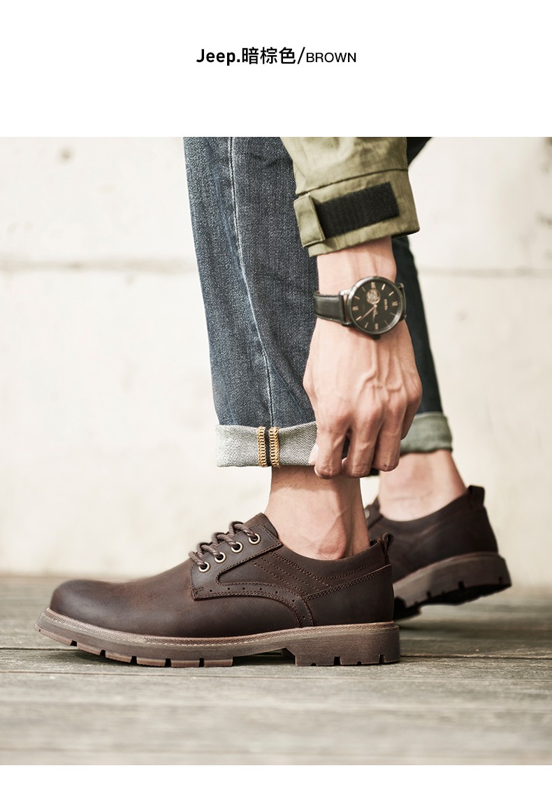 商品名称:JEEP吉普男鞋冬季低帮真皮英伦工装马丁靴大头休闲皮鞋 P223M10048暗棕色/黑色 尺码38-44 下单请备注颜色尺码