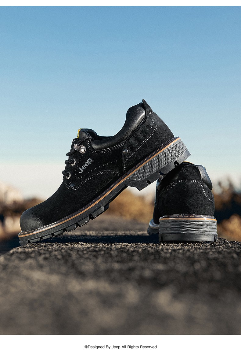 JEEP马丁靴男低帮男鞋冬季新款英伦风男士潮鞋中帮工装雪地靴子男 P12221710K 黑色/卡其色 尺码38-44下单请备注颜色尺码