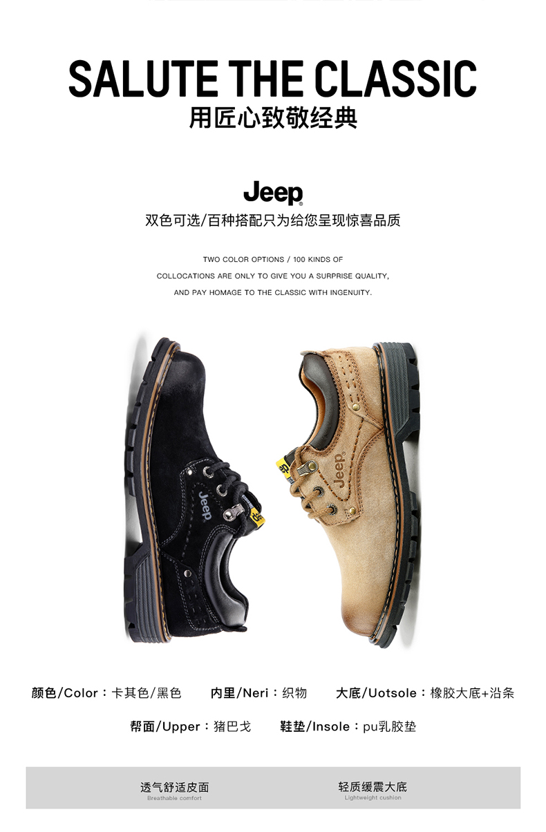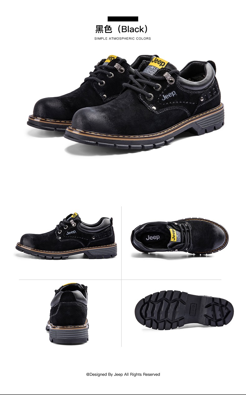 商品名称:JEEP马丁靴男低帮男鞋冬季新款英伦风男士潮鞋中帮工装雪地靴子男 P12221710K 黑色/卡其色 尺码38-44下单请备注颜色尺码