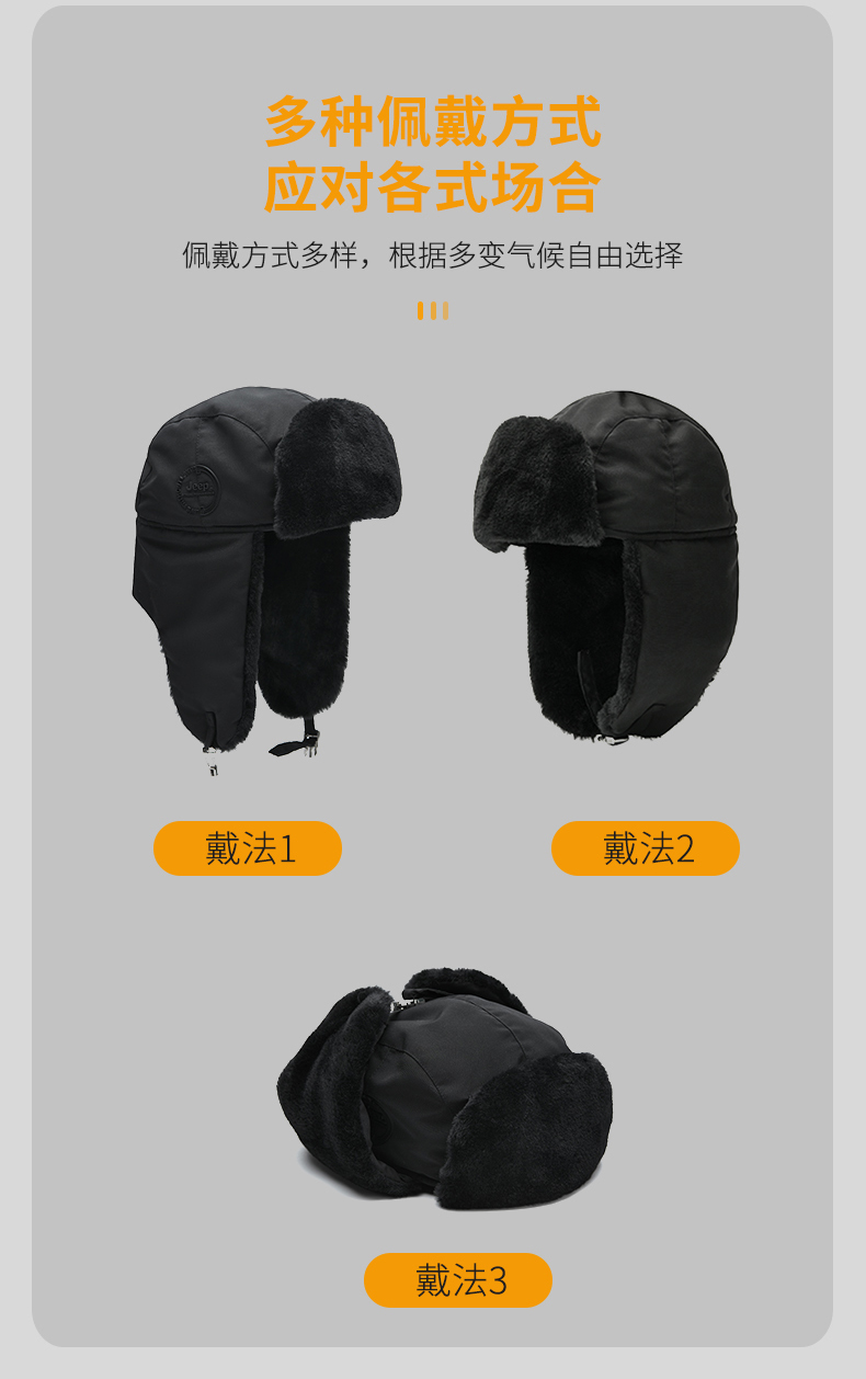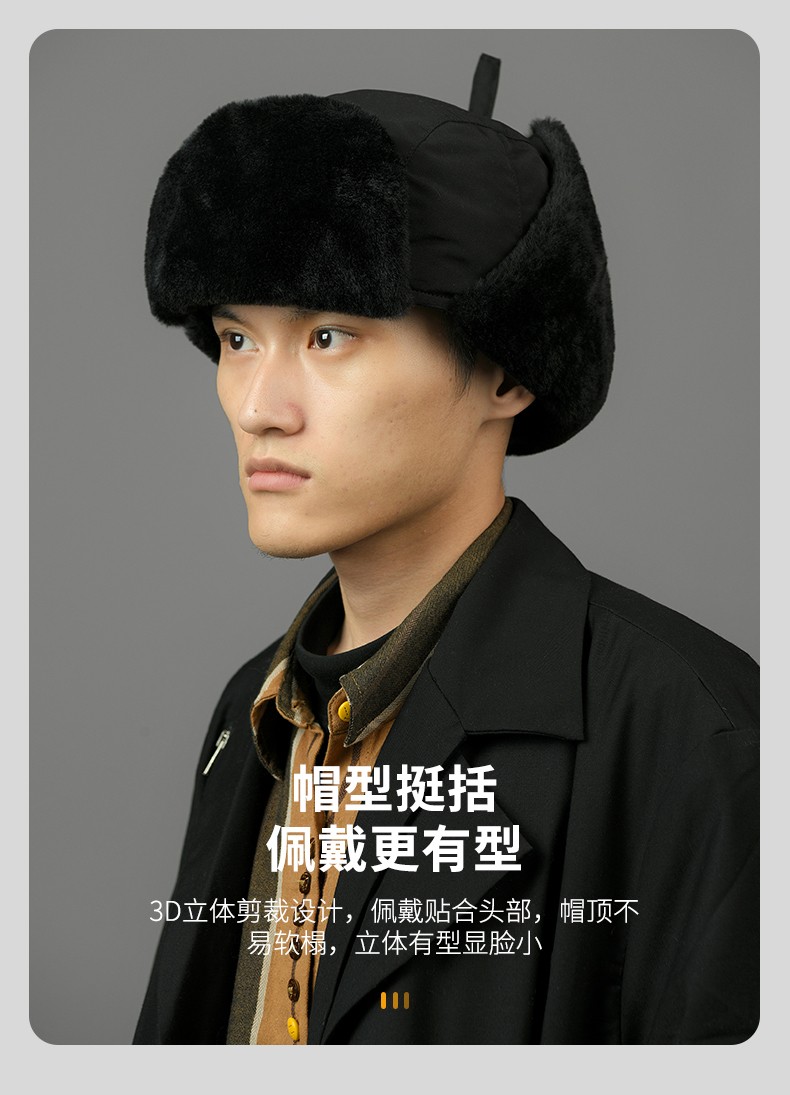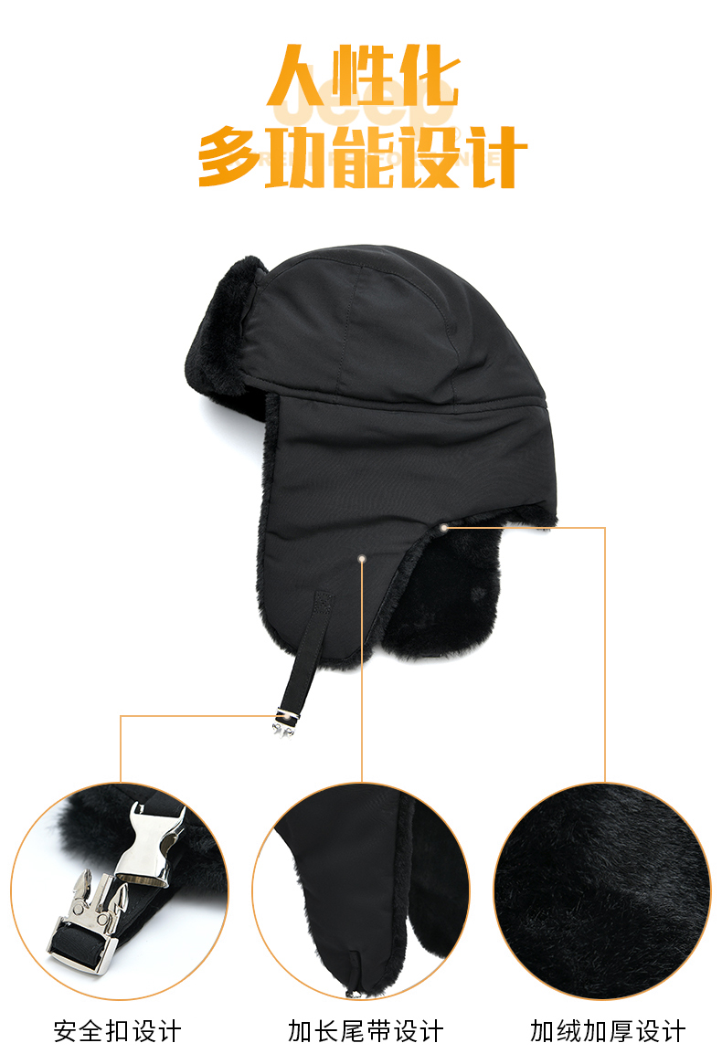 商品名称:JEEP飞行员雷锋帽男皮毛一体护耳冬季加绒加厚东北保暖防风防寒帽 P143078913 黑色/米白 58-60cm 可调节 下单请备注颜色